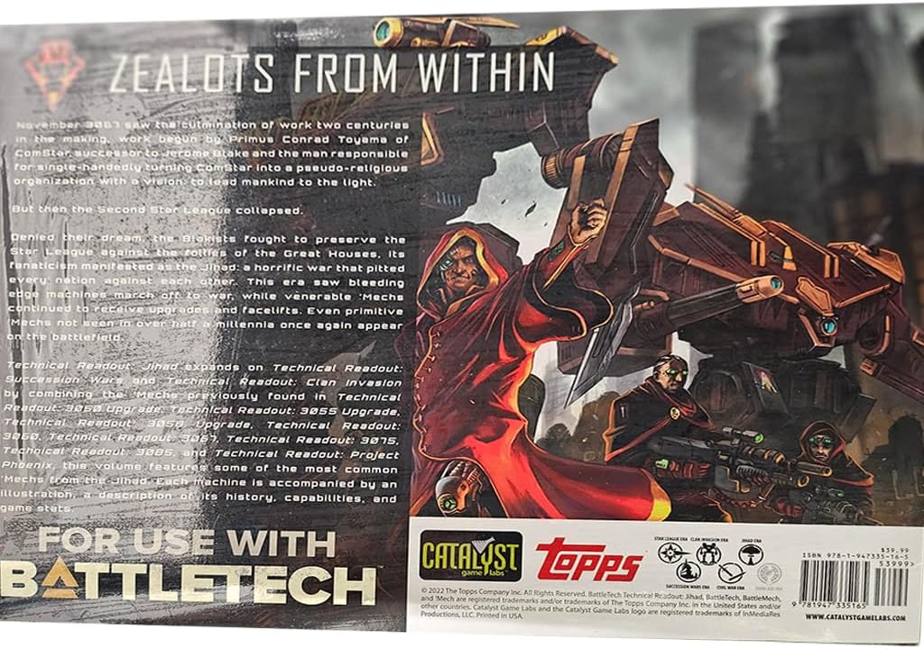 BattleTech Technical Readout - Jihad Explore the turbulent era of the BattleTech universe with the BattleTech Technical Readout: Jihad by Catalyst Game Labs. Set during the cataclysmic conflict that followed the collapse of the Second Star League, this technical readout delves into the machines of war that shaped the brutal Jihad period. Discover advanced technologies, refurbished ’Mechs, and the return of ancient war machines as every nation battles for survival. Whether you're a seasoned veteran or new to the BattleTech universe, this book is an essential addition to your collection, offering in-depth details on the 'Mechs and vehicles that defined one of the darkest periods in BattleTech history. Key Features: Detailed Insights: Covers the cutting-edge technology and war machines of the Jihad era. Historic Context: Explores the origins and impact of the Jihad following the fall of the Second Star League. Upgraded & Primitive 'Mechs: Features both state-of-the-art and ancient 'Mechs returning to the battlefield. Comprehensive Coverage: In-depth profiles of vehicles, weapons, and equipment used during the Jihad. Essential for Fans: A must-have for any BattleTech enthusiast looking to expand their knowledge of this pivotal era. Contents: 1x Technical Readout