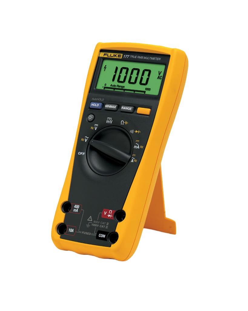 MULTIMETER, DIGITAL, HAND HELD, 6000 DMM Functions:AC/DC Current, AC/DC Voltage, Capacitance, Frequency, Resistance Current Measure AC Max:10A Current Measure DC Max:10A Voltage Measure AC Max:1kV Voltage Measure DC Max:1kV Resistance Measure Max:50Mohm DMM Response Type:True RMS Display Count:6000 No. of Digits:3. 75 Range Selection:Auto, Manual Product Range:Fluke 170 Series SVHC:No SVHC (15-Jun-2015) Current Measuring Range AC:60mA to 10A Current Measuring Range DC:60mA to 10A Frequency Measuring Range Accuracy:? (0. 1%+1) Frequency Measuring Range Resolution:0. 01Hz