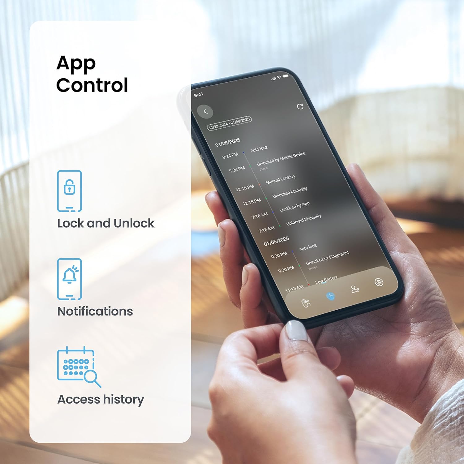 | Additional Features | Auto-Lock, Fingerprint, Passcode Unlock, Touchscreen, Wi-Fi |
