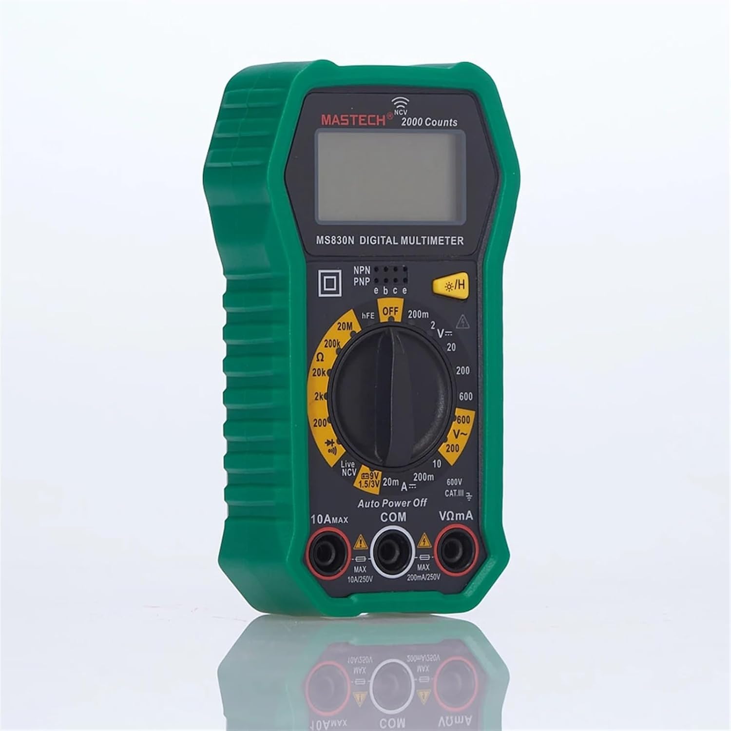AmmetersMS830NRangeAccuracyResistance200, 2K, 20K, 200K±(1.0%+5)20M±(1.2%+8)DCV200mV±(0.5%+3)2V, 20V, 200V, 600V±(0.8%+3)600V±(0.8%+5)ACV200V, 600V±(1.0%+10)DCA20mA±(1.0%+5)200mA±(2.0%+5)10A±(3.0%+5)Battery test1.5V, 3V, 9V±(1.8%+2)GeneralAccessoriesTest leadsManual1.5V*2 AAA Battery( not include)Max Display: 2000Battery: 1.5V AAA*2( not include)