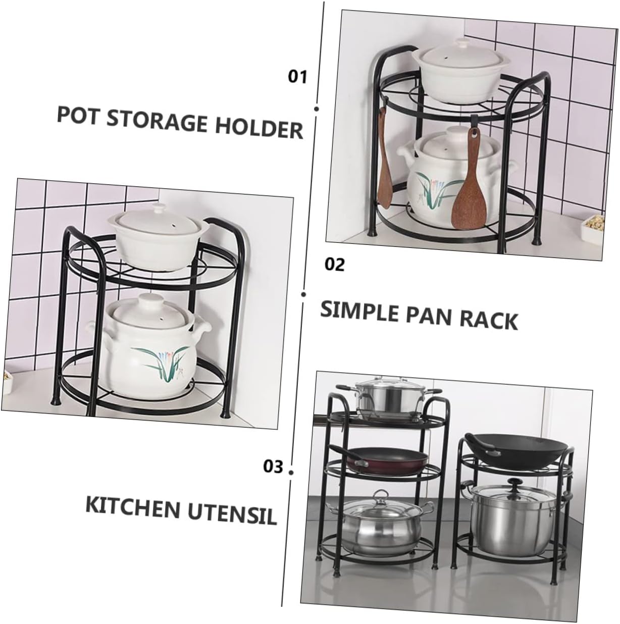 Package Include 1 x pot rack Features -Color: Black storage bracket. -Size: About 40.00X36.00X36.00cm / 15.72X14.15X14.15inch home organization. -Material: Iron creative storage support. -With four adjustable rack leg pads, thus it will not scratch the floor pot lids holder rack. -Manufactured with premium iron material with high toughness cookware storage rack. -This floor storage rack will not occupy the kitchen cabinet space kitchen pot storage rack. -It can display your pots and pans, extend your kitchen cabinet area storage rack for kitchen. - , and to use, can be used for a long time kitchen countertop organizer.Goods Descriptionstorage rack for kitchen It can display your pots and pans, extend your kitchen cabinet area.cooking pot shelves , and to use, can be used for a long time.cookware storage rack This floor storage rack will not occupy the kitchen cabinet space.pot holders stand for kitchen Manufactured with premium iron material with high toughness.kitchen racks With four adjustable rack leg pads, thus it will not scratch the floor
