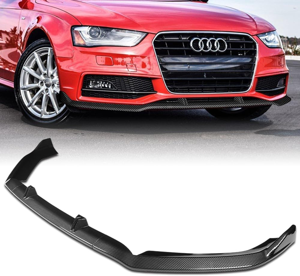 Q1-TECH, 9PCS Front Bumper Lip & Side Skirt Extensions Diffuser Compatible with 2013-2016 Audi A4 Quattro S4, Front Bumper Lip Air Chin Body Spoiler Splitter ABS (Painted Carbon)