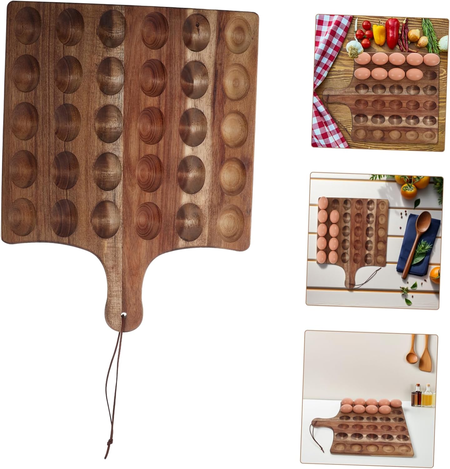 Package Include 1 x egg tray Features -Convenient and practical: the deviled egg tray with compartments allows for easy placement and storage of eggs, keeping your kitchen neat and organized deviled egg plate wood -Size: 43.00X33.00X1.60cm/16.90X12.97X0.63in wood deviled egg tray -Material:Wood wooden egg tray -Versatile use: suitable for home kitchens, restaurants, banquets, and various other settings, making your daily life and gatherings more convenient egg serving trays for deviled eggs -Spacesaving: the compartment design utilizes space, making your refrigerator or cabinet more orderly and saving space deviled egg tray -Multifunctional design: this tray can be used not only for storing eggs but also as a dessert plate, meeting your various food display needs deviled eggs platter -Color:Coffee deviled egg platter wood -practical and reliable: made of wood, this tray is practical and reliable, resistant to deformation or damage over longterm use deviled egg holderGoods Informationdeviled egg serving tray This versatile wooden egg tray is ideal for serving deviled eggs or desserts.deviled egg dish Its dual-sided design allows for multiple uses, making it a practical addition to any kitchen.deviled egg containers The natural wood finish adds a rustic charm, while the carefully crafted compartments your eggs or treats stay in place during serving