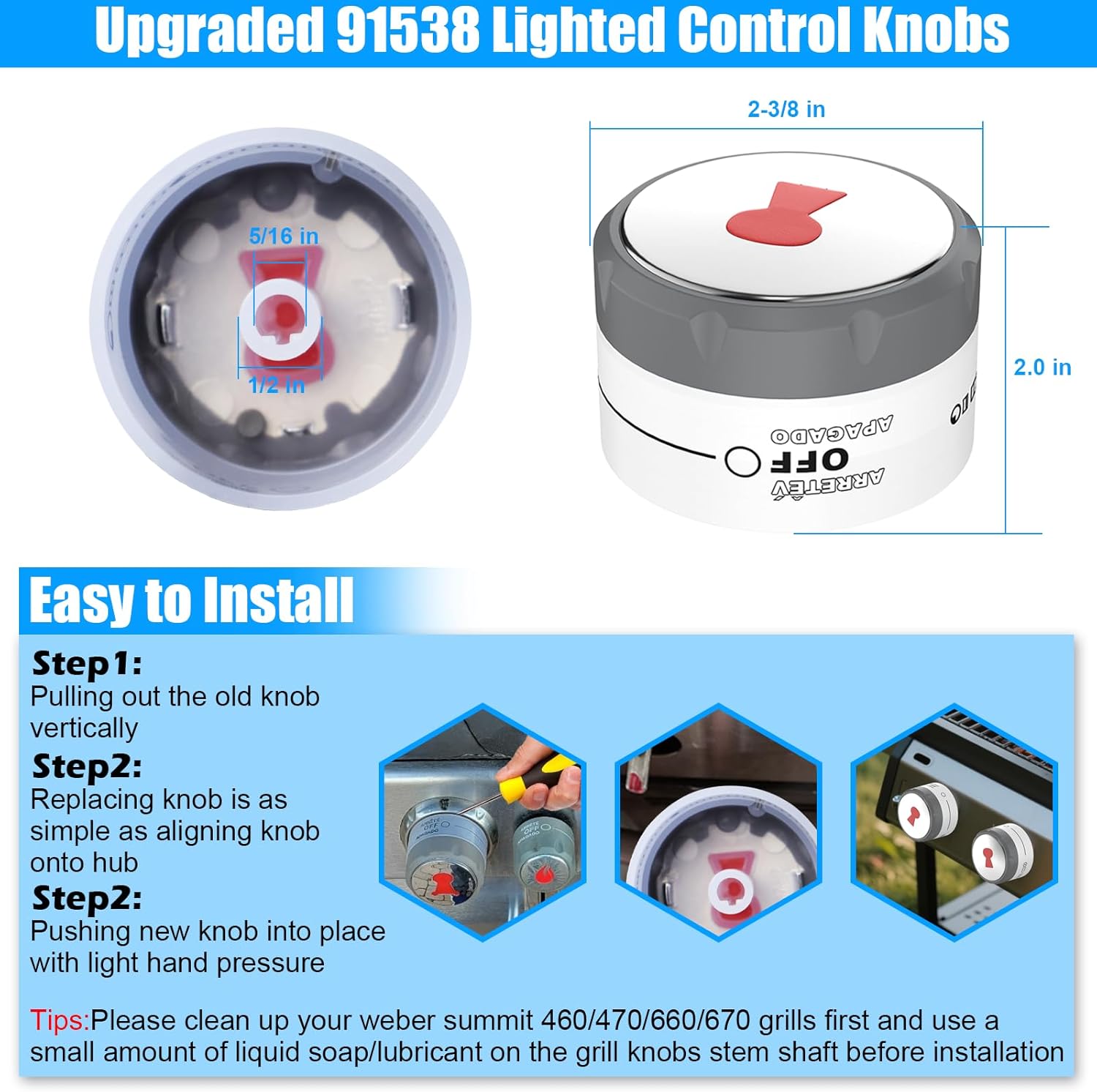 | Included Components | 91538 Grill Lighted Control Knobs for Weber Summit Grill Knobs Replacements. |