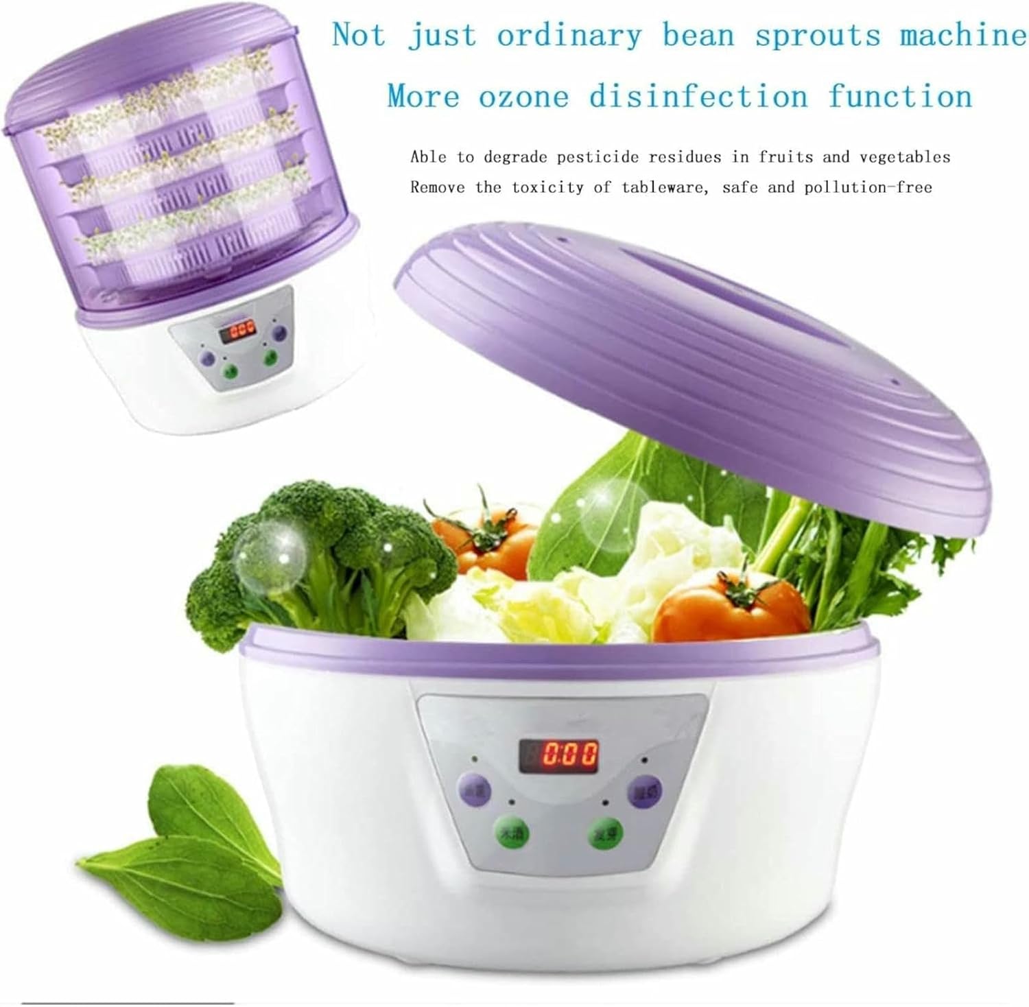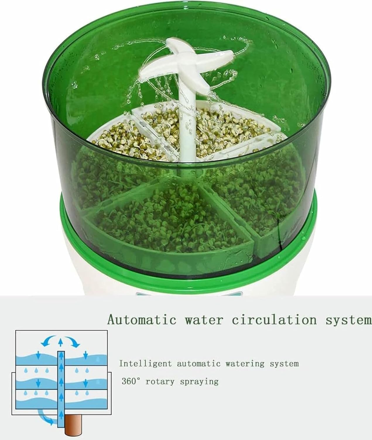 SpecificationSize: 29 * 33cm (11.4 * 12.9IN)Material: pp + ABSConstant temperature: 20wColor: GreenGermination Time: 2-2.5 daysMaking Yogurt Time: 8-12 hoursBrewing rice wine time: 28-38 hoursPacking specification: bean sprouts * 2PCSFeatures:Microcomputer accurate control stressMulti-function (bean sprouts, sterilization, yogurt, rice wine)Automated beans functionAutomatic water circulationBecause everyone's display is different, there may be little color difference, please understand ~It is recommended that any transgenic soy is not planted, which can only be used for edible.Most yellow soy is a transgenic.Therefore, green peas is recommended.If you have any problems, please feel free to contact us.We will provide you with the best services.