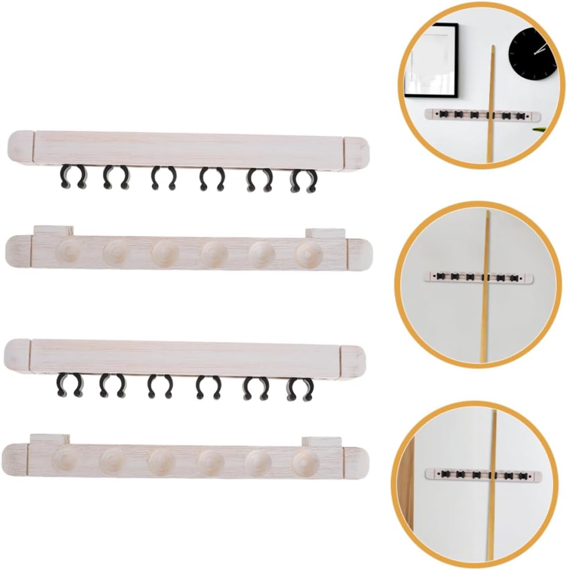 DescriptionThis wall-mounted solid wood billiard cue rack is designed to keep your pool area organized and stylish. Crafted from solid wood, it adds a touch of elegance to any game room. The pool stick rack securely holds multiple cues, ensuring they are always within reach and neatly stored.Features-Color:Beige-Material:Wood-Size:36.00X5.50X3.00cm/14.15X2.16X1.18in-Size:36.00X4.00X3.00cm/14.15X1.57X1.18in-Sturdy solid wood: made from solid wood, this cue rack is designed to last, resisting warping and ensuring your cues remain protected over time-Stylish design: the sleek and modern appearance of this cue rack adds a touch of elegance to any billiard room, enhancing the overall aesthetic and -Space saving wall mount: the wall mounted pool stick rack saves valuable floor space and makes installation easy, keeping your cues neatly organized and preventing bending or damage-Nice capacity: with six slots, this pool stick rack allows you to store multiple cues simultaneously, making it easy to access them quickly, improving efficiency-Versatile use: ideal for homes, clubs, and entertainment venues, this cue rack ensures your cues are orderly, preventing loss or damage and providing a better billiard experience