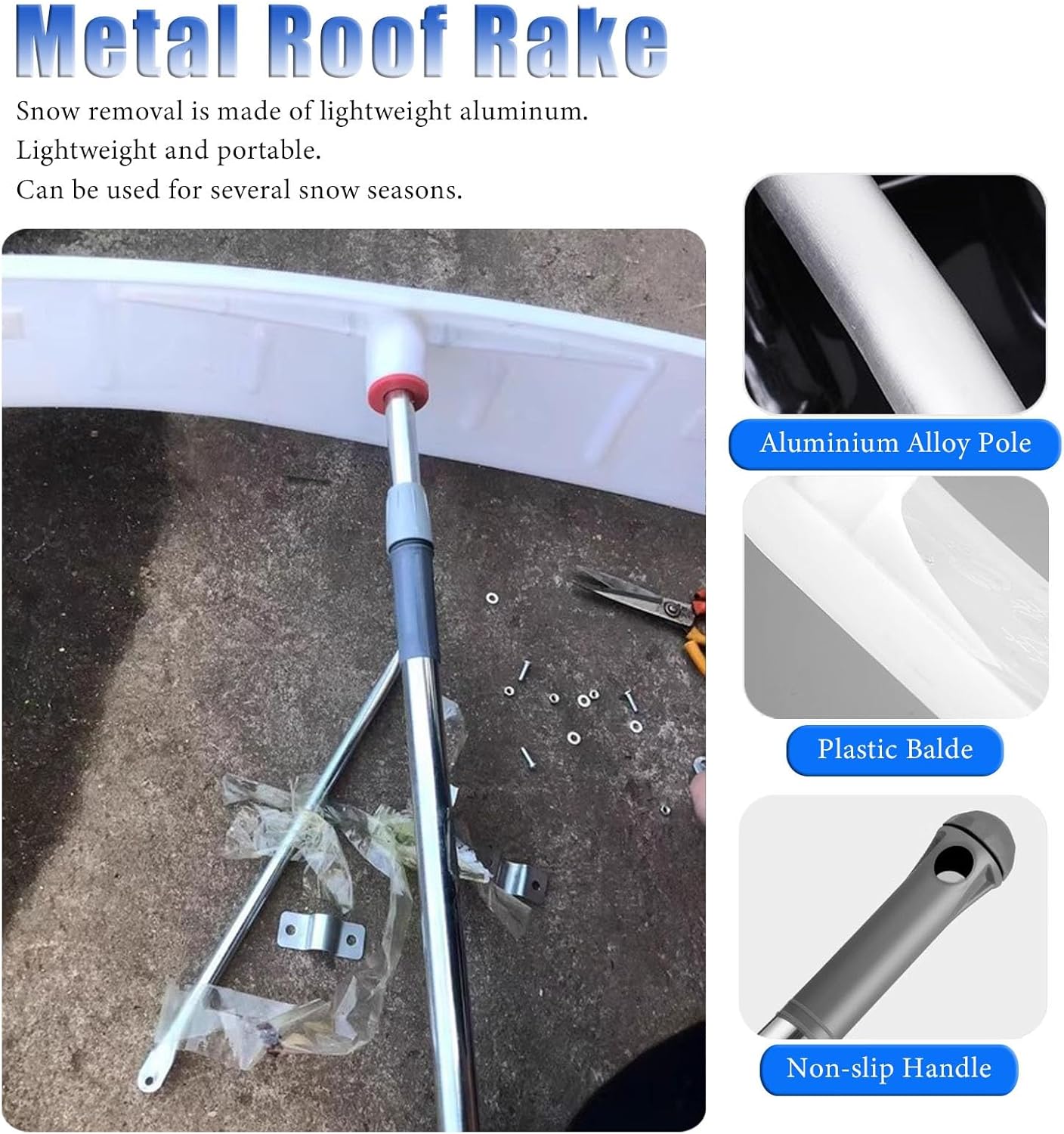 Stop compromising safety for convenience! Using a ladder to clear snow from your roof can be extremely hazardous. Our innovative roof snow rake offers a safer alternative. With its extendable design, you can easily reach your roof and remove snow without the risk of climbing to dangerous heights. **Product Specifications** - **Material**: Durable Aluminium Alloy - **Blade Material**: Sturdy Plastic - **Extendable Length**: 200 cm to 400 cm (6.6 ft to 13 ft) - **Blade Width Options**: 58 cm (23"), 69 cm (27.5"), 77.5 cm (30.5") **Product Features** - Crafted from lightweight aluminum for easy handling. - Telescoping pole allows for adjustable height. - Ergonomically designed non-slip handles for better grip. - Superior design compared to traditional roof rakes. - Perfect for clearing powder snow efficiently. - Enables safe snow removal without the need for ladders. - Ideal for clearing rooftop debris and leaves. - Versatile for use on both flat roofs and gently sloping pitched roofs. **Package Includes** - Roof Snow Rake (Includes screws) **Important Notes** - Please allow for slight deviations in measurements due to manual measuring. - Product images may vary slightly due to different digital equipment; please refer to the actual product for accuracy. **Customer Satisfaction** We are committed to providing exceptional service. If you have any questions or concerns, please feel free to reach out to us. Your safety and satisfaction are our top priorities!