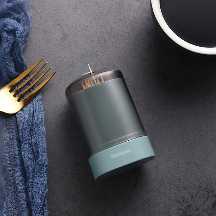 Material: PPName: toothpick holderShape: roundCapacity: about 150pcs toothpickColor:greenSize: 9.5* 5.5cm Application: living room, kitchen, office.Transparent PP material is strong and .Press to and easy to use.The toothpick holder and lid can be detached for easy loading of toothpicks.Transparent visible window, cover can be detached and cleaned, the bottom non-slip block design is not easy to slip off, stable and strong。Versatile Application: These toothpick holder dispenser and toothpick dispenser electric are suitable for a range including home kitchens, restaurants, cafes, or office spaces. Also our auto toothpick dispenser and automatic toothpick dispenser touchless are cute gift for your families, friends and colleagues