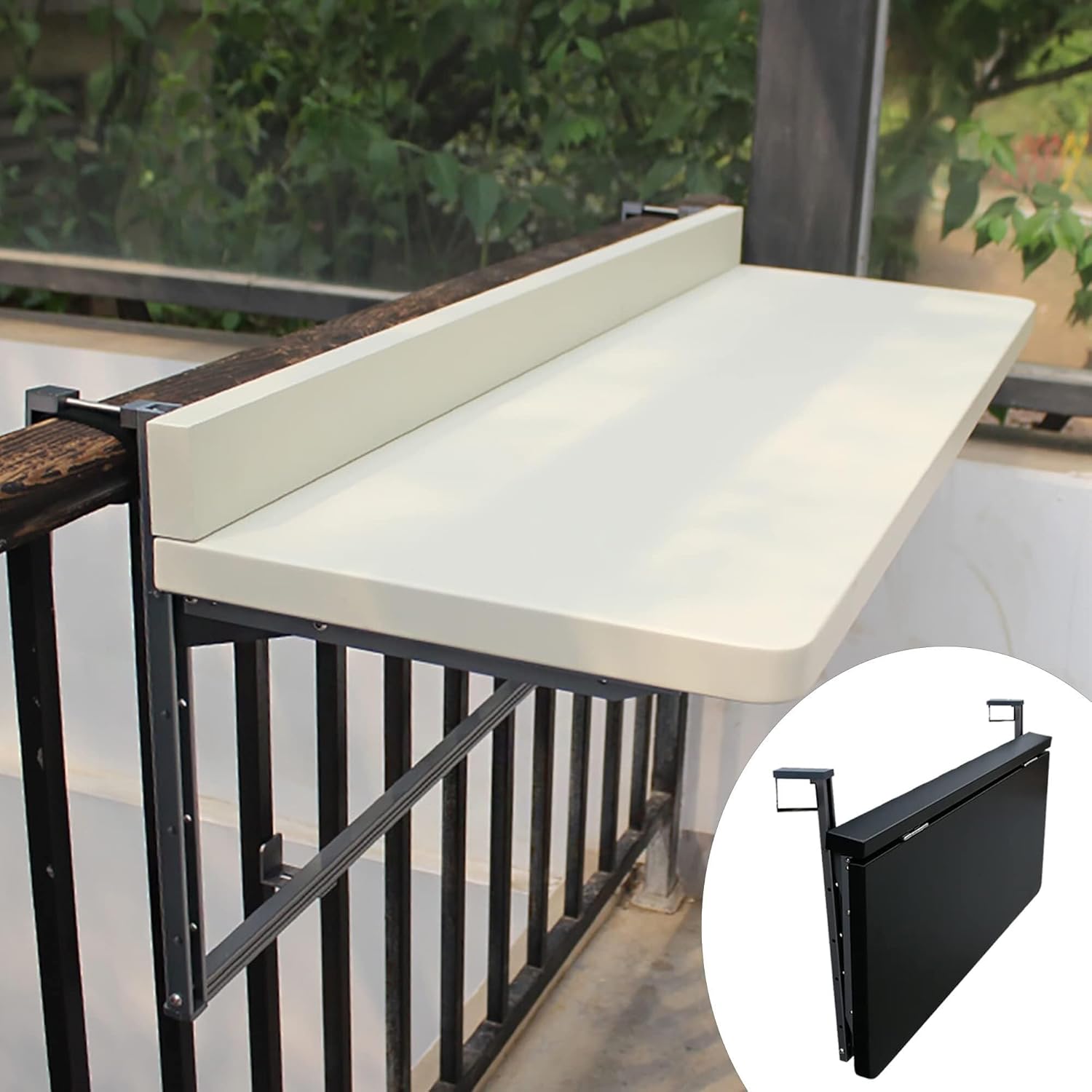 Upgrade your outdoor living with this Balcony Folding Hanging Railing Table, designed to maximize function in compact spaces. Crafted from durable aluminum alloy with a sleek matte finish, this weather-resistant table is built to handle rain, sun, and wind while remaining stable and easy to maintain.The adjustable height system offers 5 levels (36cm range), allowing you to set the perfect height for dining, working, or relaxing. A 7cm raised safety baffle keeps items securely in place, making it practical for meals, drinks, laptops, or plants.This versatile hanging deck table easily fits square, round, wooden, radiator, and double metal railings (2–20cm wide), making it ideal for balconies, patios, porches, and gardens. With no drilling required, installation is quick and damage-free—simply hang, tighten, and snap into place.When not in use, the table folds flat within seconds, saving valuable space while providing convenience. Whether used as a bar table, coffee table, desk, or decorative shelf, this adjustable folding balcony table is a smart addition to any outdoor or indoor area.