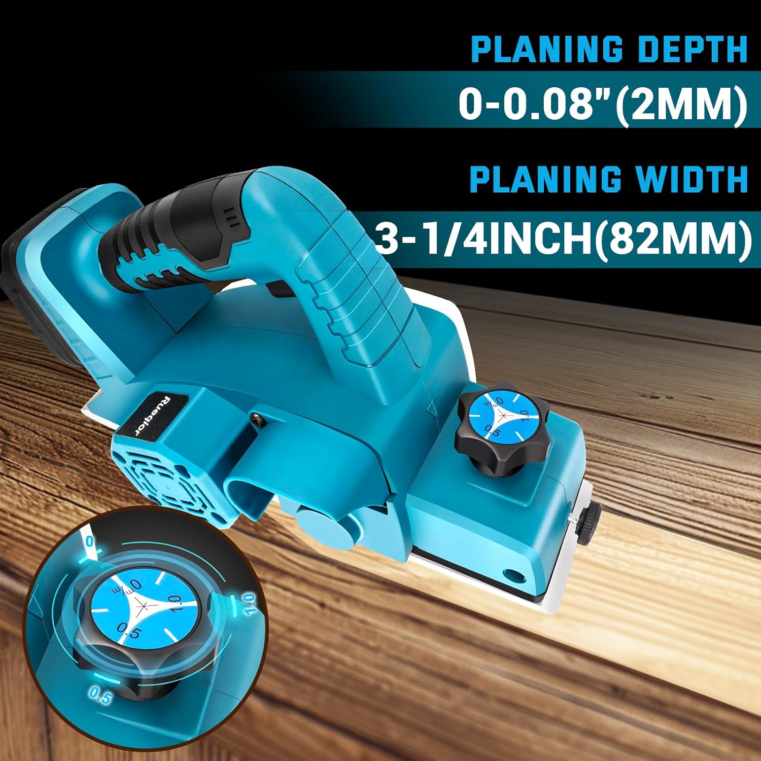 Rueqior Cordless Handheld Planer for Makita 18V Battery, 15000 RPM Power Wood Planer, 3-1/4 Inch Brushless Power Planer for Woodworking, Carpenter Home DIY(No Battery)