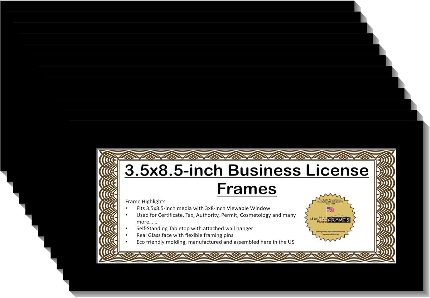Creative Picture Frames, US made and quality you can rely on. Our frames are manufactured and assembled by employees who were trained by three generations before them providing over 100 years of experience. They include manufactured eco friendly molding, full strength glass, custom easel backs and hangers for more versatility. If you have any questions please don't hesitate in contacting us. Thank You