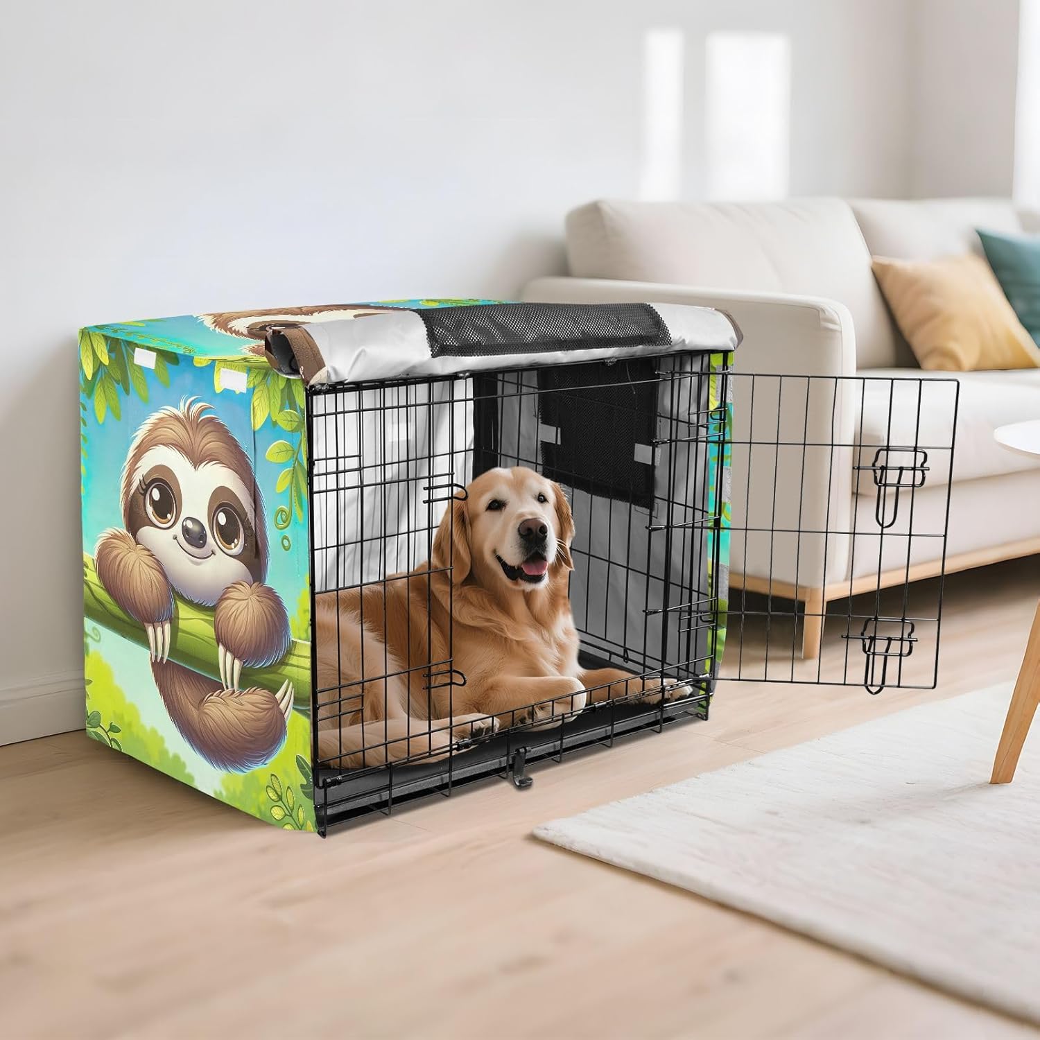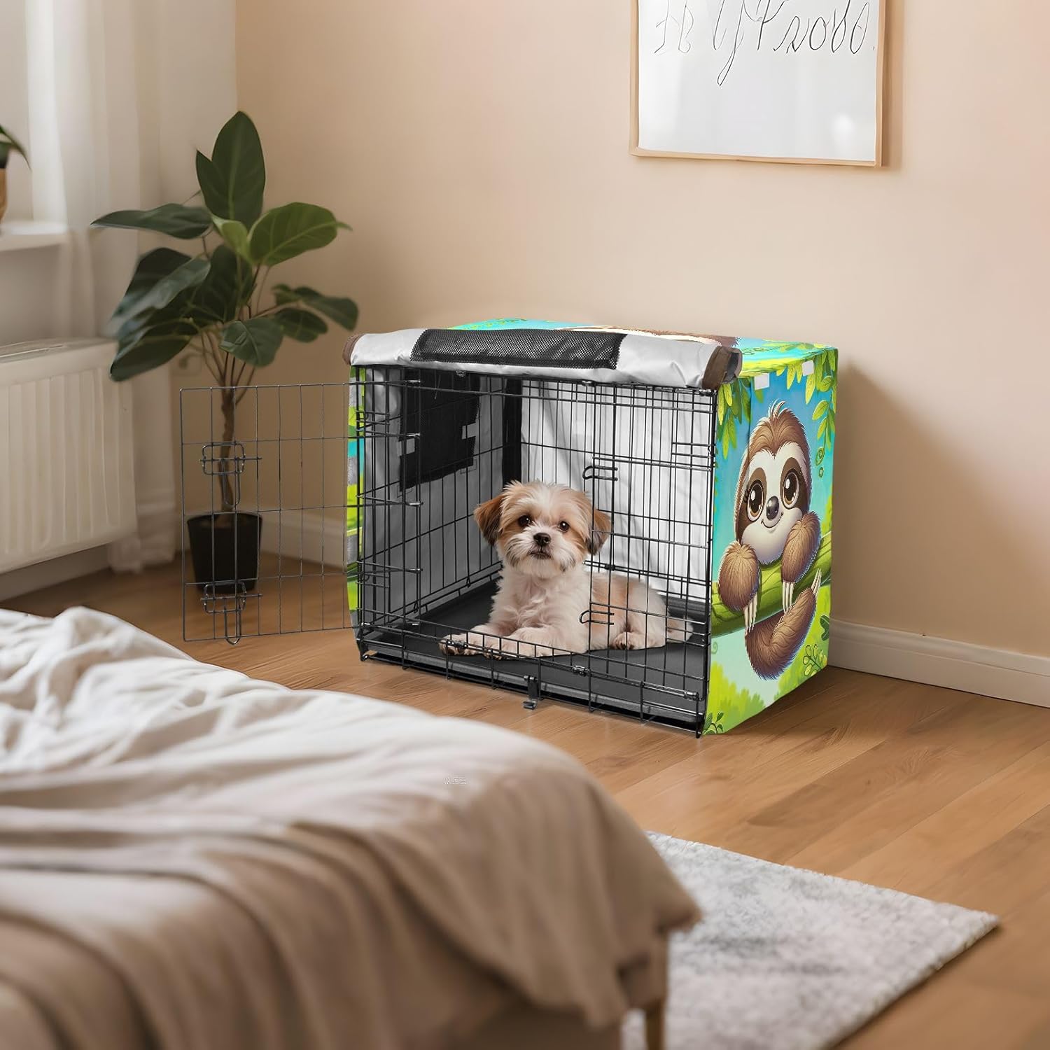 Protection – Made from 600D silver-coated oxford fabric, this travel crate cover provides reliable protection against weather conditions, including wind and rain. It prevents your dog from scratching the crate and blocks harmful UV rays.Easy Installation – This dog kennel cover features a user-friendly fastening system, allowing for quick installation without tools. It securely attaches to your dog crate, ensuring it stays in place for continuous protection.Effective Ventilation – Mesh windows on every side of the crate cover allow for steady airflow, keeping your dog comfortable and well-ventilated while inside. This design ensures your pet has a cool and breathable environment.Secure Fit – Equipped with four tie-down straps, the cover stays firmly in place, preventing it from shifting or being blown away. This added stability makes it suitable for outdoor use even in windy conditions.Ideal for Multiple Uses – This versatile dog crate cover is Suitable for both indoor and travel use. Whether you’re at home, on a road trip, or camping, it offers a practical solution for protecting your pet’s crate.