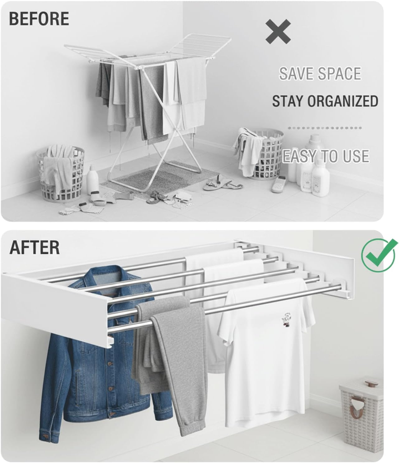 | Recommended Uses For Product | Apartment Drying, Bathroom Towel Drying, Indoor Laundry Drying, Small Space Laundry Solutions, Space-saving Clothes Drying |