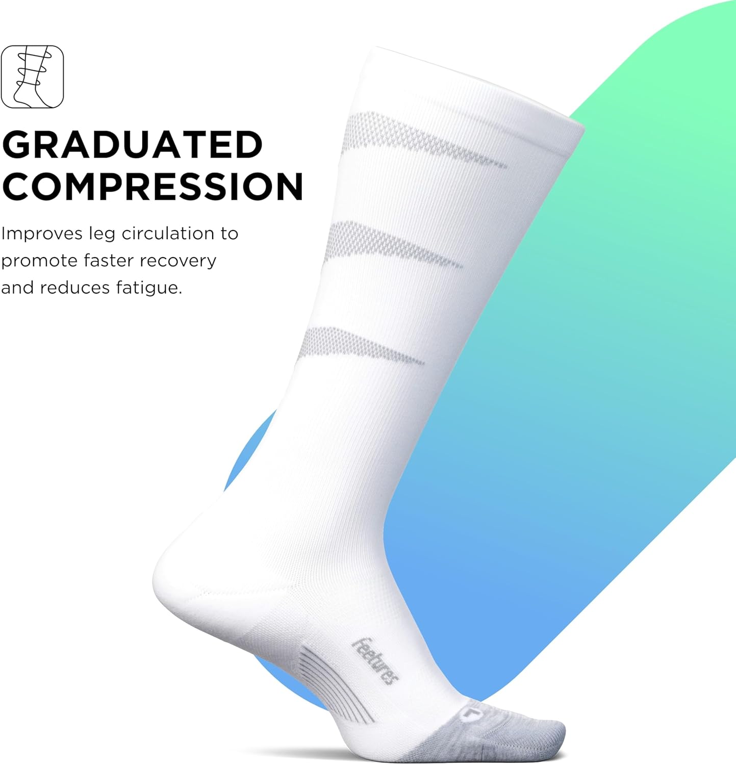 Utilizes Targeted Compression and anatomical design with the perfect amount of graduated compression to deliver a better fitting compression sock. It also improves circulation to reduce muscle fatigue when active and provide faster recovery.