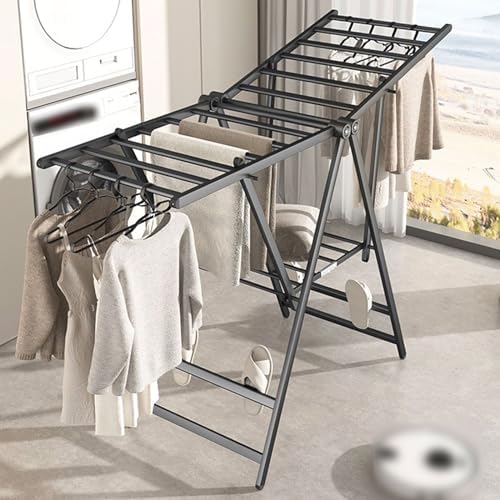 Clothes Drying Rack - Collapsible Clothes Drying Rack, 2-Level Folding Aluminum Drying Rack w/Height-Adjustable Wings, Bottom Shoe Rack, Space-Saving Laundry Drying Rack for Indoor & Outdoor Use Specifications: Color: Black,Silver Material: Aluminum alloy Product Size: 130/140/150*95*62cm(51.2/55/59*37.4*24.4in) 160*110*62cm/63*43.3*24.4in Load Capacity: 100 kg/ 200lbs Features: mobile, foldable,folding,save space Applicable: living room, bedroom, balcony, hallway, laundry room, bathroom, garden or anywhere outdoors. Package Contents: 1 x Floor Foldable Clothes Drying Rack Please Note : 1.If you have any questions, please do not hesitate to contact us. 2.We are manually measuring, there may be 3-5mm error, please prevail in kind.
