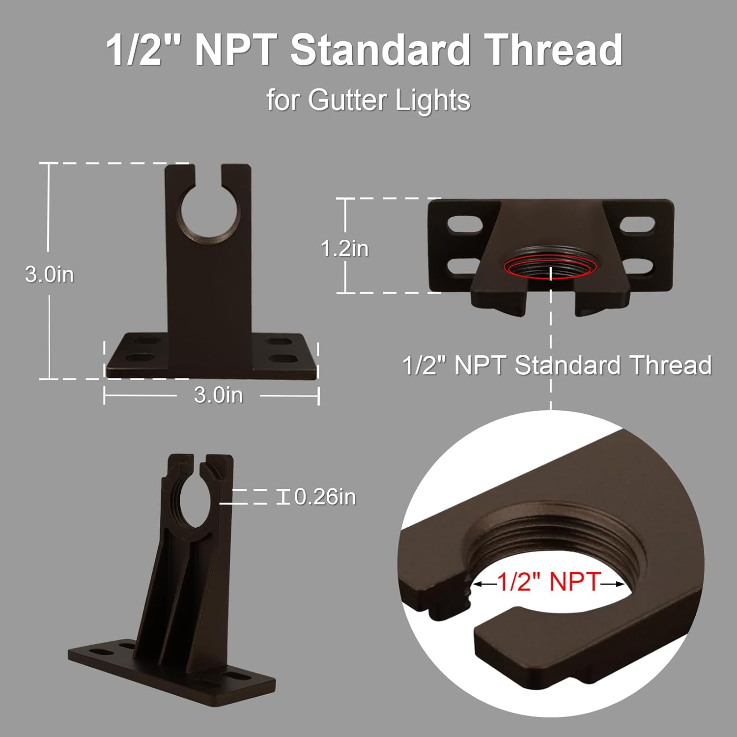 ZestPatio Gutter Brackets for House, Mount Bracket for Low Voltage Spot Lights, 1/2" NPT Thread for Gutter Lights, Low voltage landscape lighting Accessories, Die-Cast Aluminum, Bronze, Pack of 6