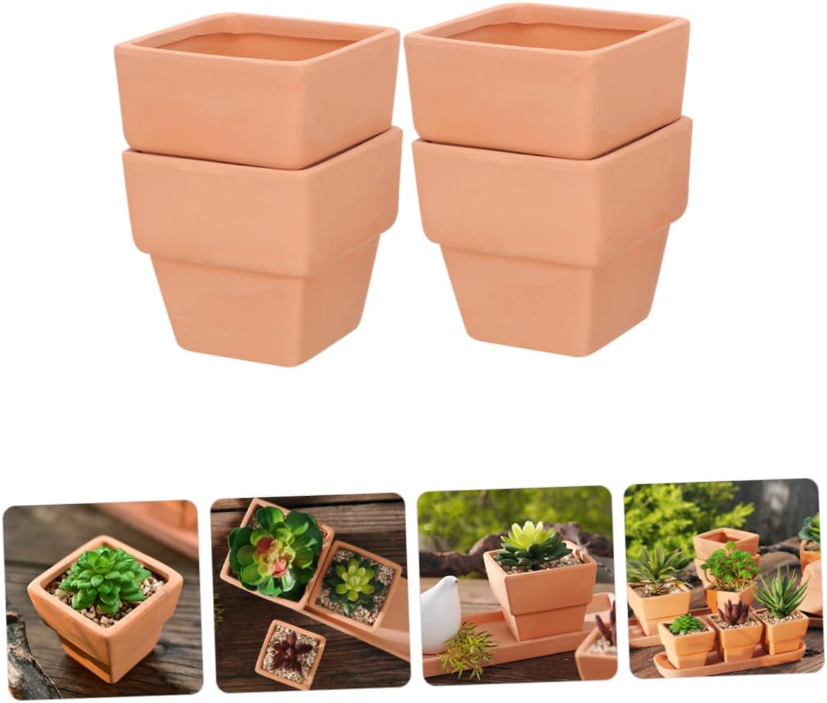 Package List 4 x Succulent Pots Characteristics -Material:Red pottery -Size:10.00X9.50X6.50cm/3.93X3.73X2.55in -Color:Light Brown -Product Info:Red succulent basin - The small planter pot is sturdy enough for longtime use and provide a bright atmosphere for home or office square terracotta pots. - Small planter pot is perfect for holding succulent or cactus plants, decorative and full of the sense of art terracotta pots square. - Perfect for living rooms, bedrooms, kitchens, bookshelves, desks, counters or anywhere else red flower pots. - Bring greenery back into your home with decorative plant pot, display it in your favorite sunny place red pottery flowerpot. - This small red pottery succulent plant container is very suitable for decoration in indoor small spaces square terracotta planter.Goods Descriptionred pottery planter The creative Succulent Planter is attractive for people.cactus planting pot square It can be used as a plant pot, storage container, etc.square terracotta color planters This flower pot is light, sturdy and delicate.red pottery flowerpot It also can be your home decoration.indoor flower pot Perfect gift for those who love plants.small terracotta pot square Great craftsmanship