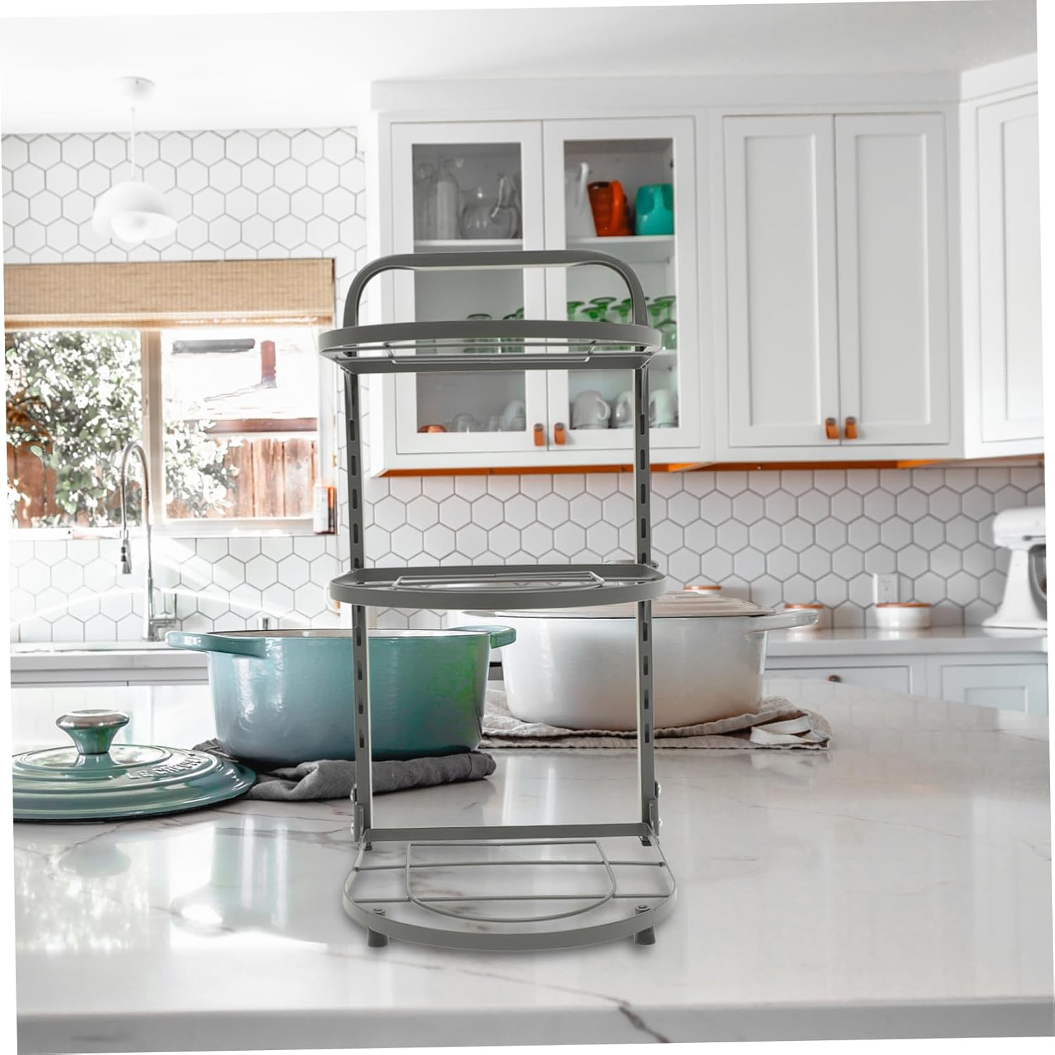 Package Include 1 Features -Color:Grey tin -Material:Carbon steel professional pot rack -Size:40.50X27.00X22.00cm/15.92X10.61X8.65in kitchen cabinet organizer - Foldable design for easy carrying and storage Suitable for kitchen cabinets under the sink, maximizing space utilization counter. - The carbon steel material made pot rack is , to break or , can be used for a long time carbon steel pan organizer. - The storage rack is widely used in holding pot, frying pan and steam pot, but also storage your spice bottles etc countertop pan organizer. -Multi-layer design with large capacity for efficient kitchen storage Segmented storage for organized placement and easy access metal pan organizer. - Multipurpose, the storage rack can hold your kitchen supplies and keep your kitchen organized carbon steel pan rack.Goods Descriptioncookware shelf Are you looking for a multi-function kitchen storage rack? Our item is a good choice.pans This rack is made of carbon steel material, which is and long-time use.pot holders The design of this product solves the problem that there is no place to put the pot and pan