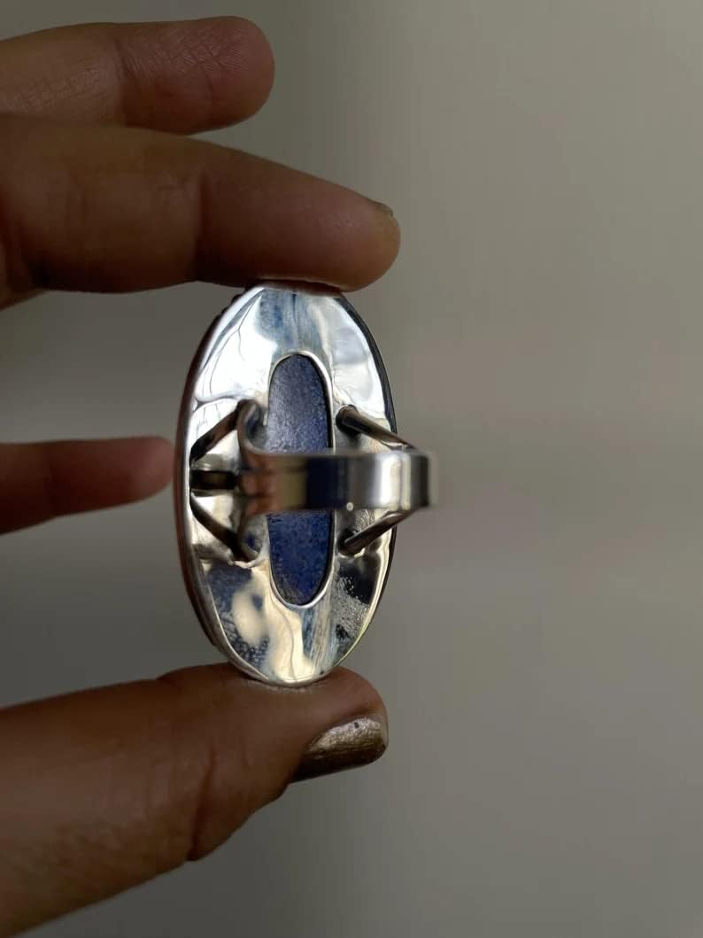 925 Sterling Silver Lapis Lazuli Gemstone Ring Natural Lapis Lazuli Gemstone Ring Pure 925 Sterling Silver Ring Nickle Free Silver RingLapis Lazuli’s benefits consist of a powerful intense blue stone used to open minds and give enlightenment. It is used to encourage self - awareness, self - confidence, self - knowledge, peace and harmony, compassion, morality, making the wearer in a good mood throughout the day. Lapis lazuli properties are being effective to soothe inflammation and help both respiratory and nervous systems fight problems. It clears the throat and thyroid, best for those who suffer vocal issues and sore throats.