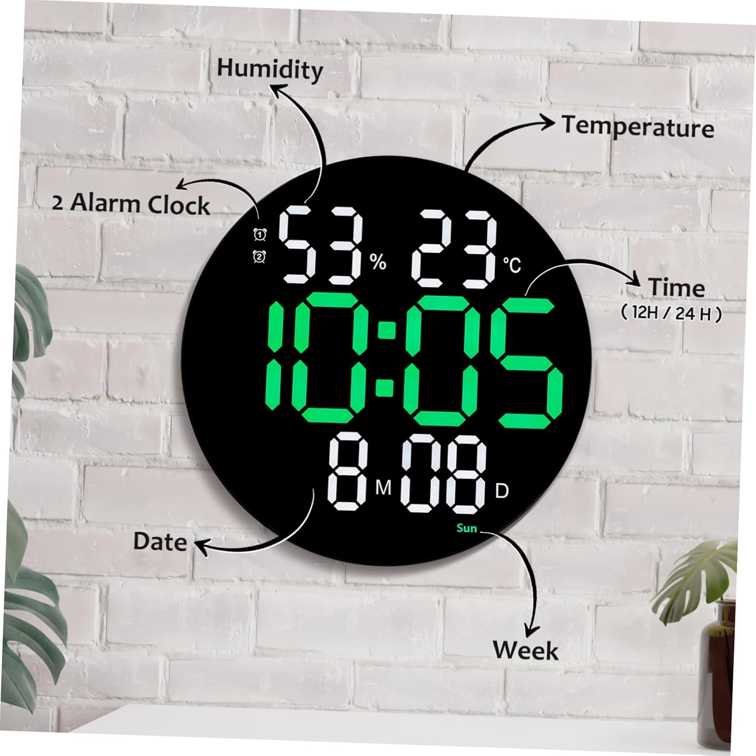 Package Include 1 Wall Clock 1 x 3.5m USB Cable 1 x Remote Controller 1 x User Manual Features -Material:Acrylic, Plastic digital alarm clock -Battery: 2 x AAA Batteries wall clock for living room -Display Type: Number digital clock for wall -Display Screen Type: LED wall clocks for living room -Movement Type: Electronic living room wall clocks -Color:Black temperature clock -Size:25.20X25.20X2.80cm/9.90X9.90X1.10in LED clock The digital wall clock comes with a remote controller, which allows you to adjust 10 levels of brightness wall LED clock. You can use this digital wall clock on many different occasions, such as home, kitchen, living room, bedroom, office, classroom, etc wall clock digital. There is a hanging hole on the back, can install this clock on wall or place it on the table alarm clock digital. LED wall clock has multiple functions, including week display, date display, humidity display, temperature display, brightness adjustment, two alarm clocks, remote controller, forward/countdown and multiple lamp colors, which is practical digital clock. This digital wall clock uses big number and large screen design, which allows you to see the data clearly from long distance digital alarm clocks.Goods Descriptionwall clock digital It has accurate time and multiple functions, which meets your daily use needs.led digital alarm clock It has wide applications, and also a wonderful present for your family or friends.wall clocks for living room You can place on the desk or on the wall.digital LED wall clock This product is a multifunctional and practical round LED digital wall clock