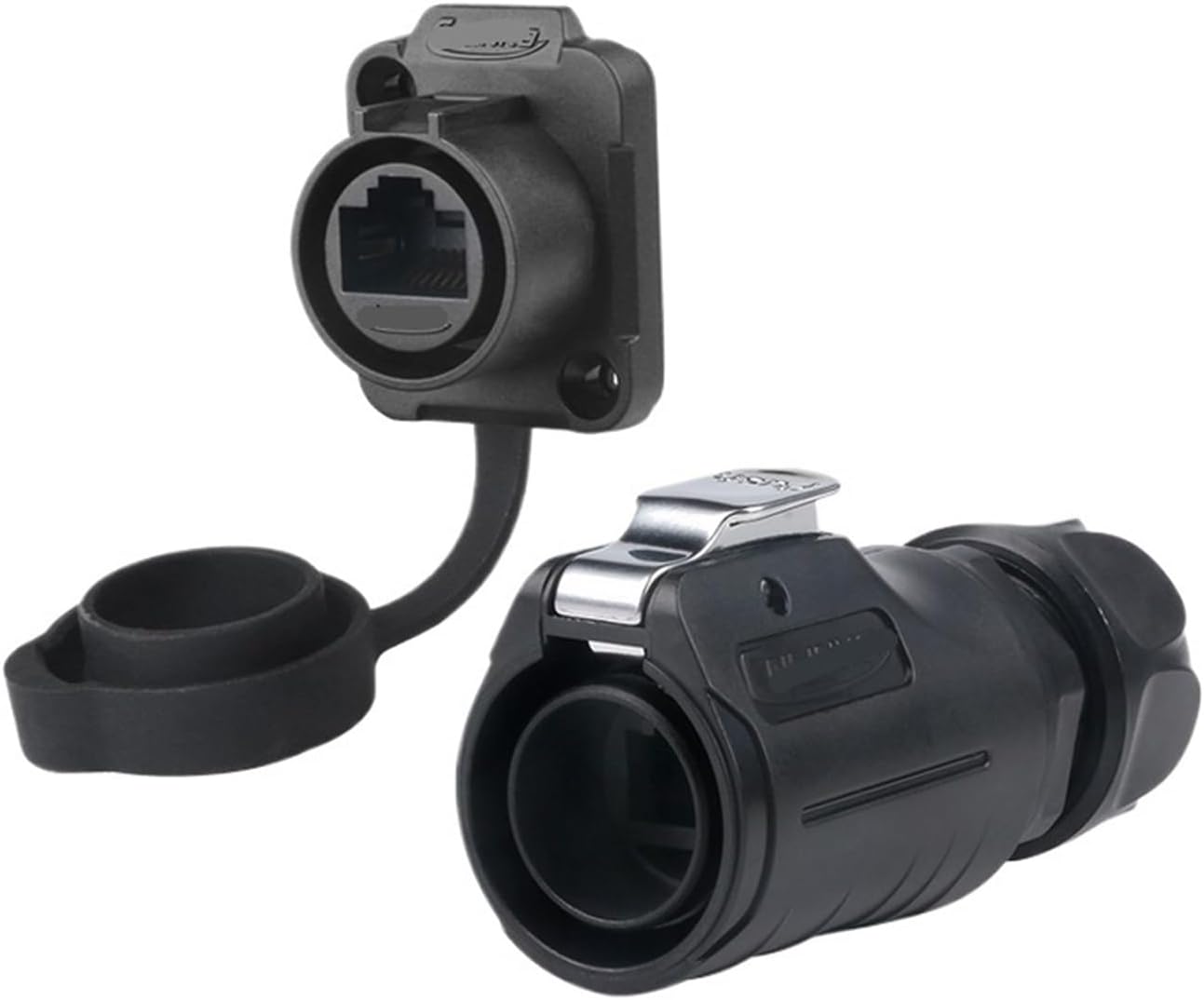 Press-In PlugsLP20 network cable aviation CAT6 black data interface RJ45 waterproof network cable adapter
