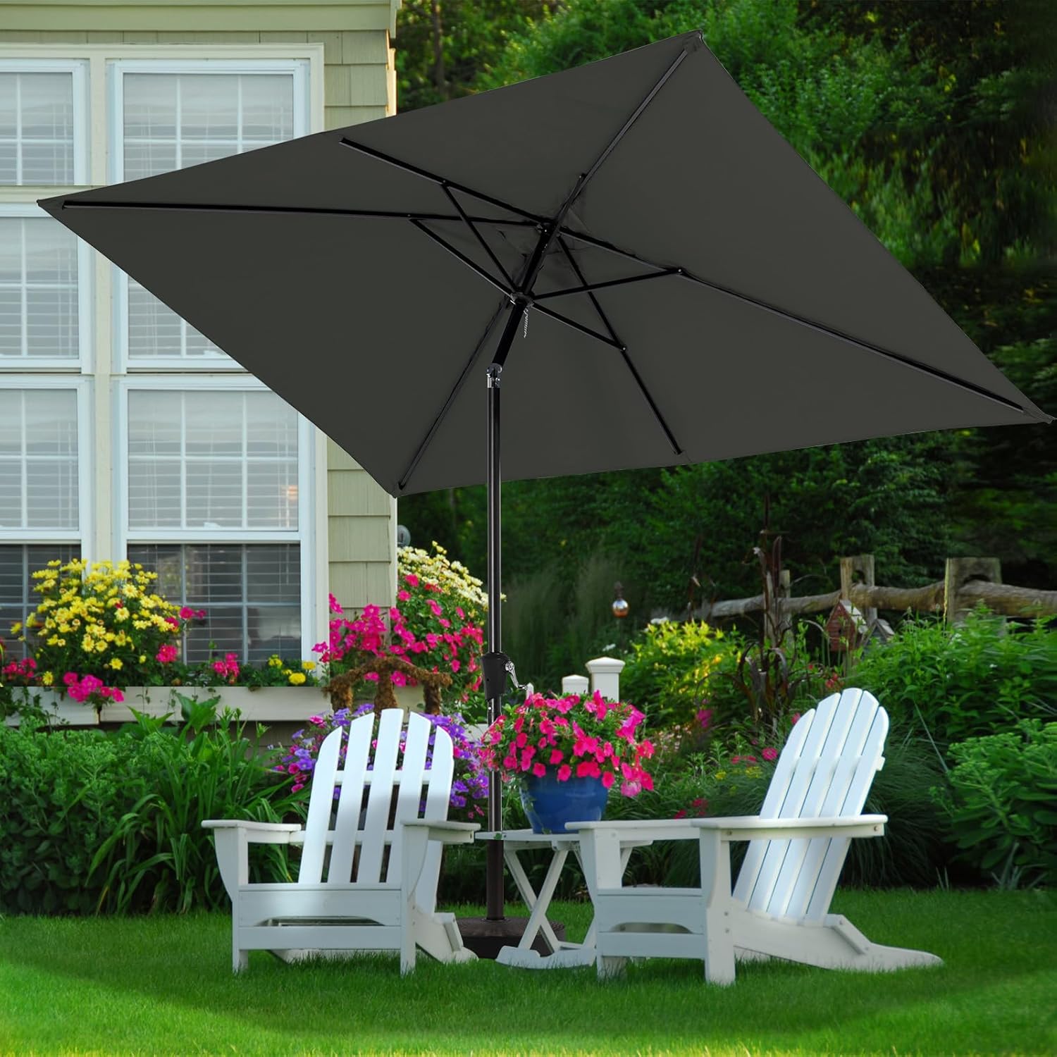 MEWAY Rectangular Patio Umbrella Outdoor Umbrella with Push Button Tilt and Crank Lift System, Market Umbrella 6 Sturdy Ribs UV Protection for Table, Deck, Pool, Backyard(6.5x10 ft, Grey)