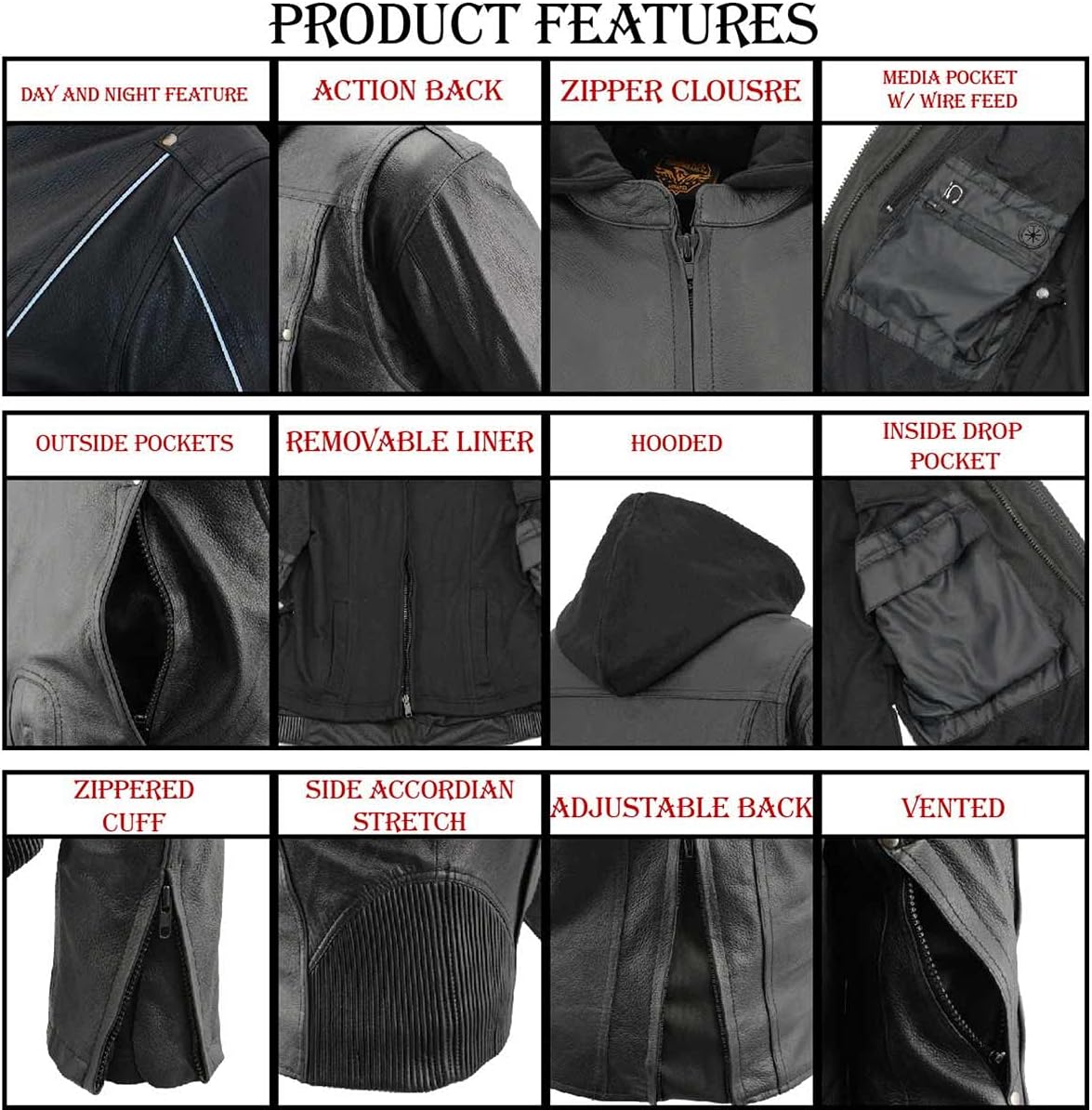 Milwaukee Leather Women's Premium Leather Motorcycle Riding Jacket With Removable Hoodie Liner Outside Features Made of Premium Leather Front Zipper Closure Genuine YKK Zippers - Known for Longevity and Durability