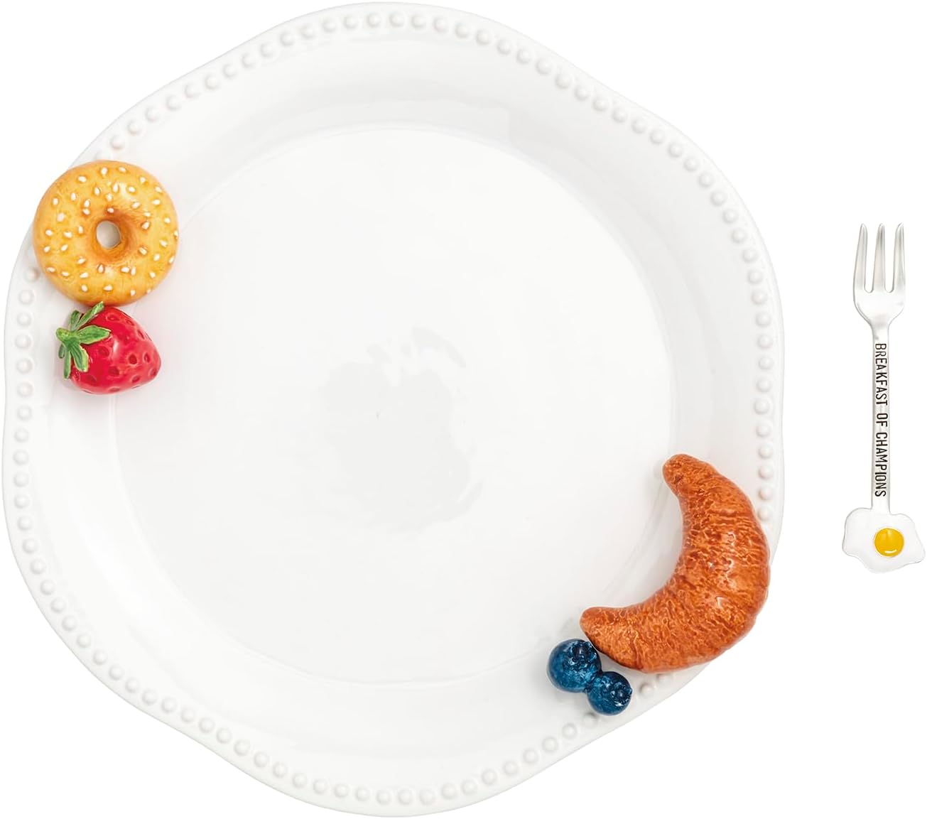 Elevate your morning gatherings with the Mud Pie White Ceramic Breakfast Platter Set from the Circa collection, a delightful 2-piece ensemble perfect for serving brunch favorites. Crafted from durable dolomite in a classic white finish, the 12-inch platter is adorned with a beaded rim, heartfelt debossed sentiment, and whimsical hand-painted ceramic brunch food accents. Complemented by a 5.5-inch stamped silverplate fork, this set blends style and function—plus, both pieces are dishwasher and microwave safe for easy care. Whether you’re hosting friends or enjoying a cozy family breakfast, this charming set brings a special touch to any table.