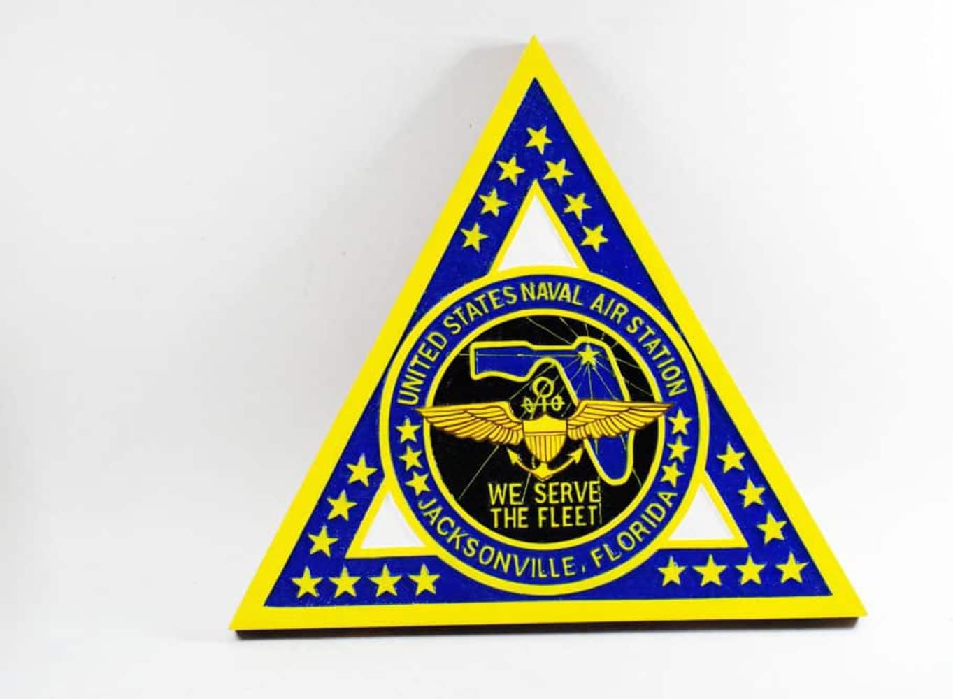 NAS Jacksonville PlaqueA hand crafted 14 inch plaque of the NAS Jacksonville Plaque.Naval Air Station Jacksonville (NAS Jacksonville) (IATA: NIP, ICAO: KNIP, FAA LID: NIP) is a large naval air station located approximately eight miles (13 km) south of the central business district of Jacksonville, Florida, United States.Location NAS Jacksonville is located in Duval County, Florida, within the city limits of Jacksonville. The base sits on a piece of land between the St. Johns River and Ortega River historically called Black Point. The airbase is part of the overall Jacksonville Naval Complex, a collection of Navy Bases in the Jacksonville Metropolitan Area that include Naval Station Mayport, the former Naval Air Station Cecil Field (now Cecil Airport), Naval Outlying Landing Field Whitehouse, and the Pinecastle Range Complex. It also neighbors a small ghost town called Yukon.History During World War I, the area now occupied by NAS Jacksonville, often referred to colloquially as “NAS Jax”, was named Camp Joseph E. Johnston, and was commissioned on October 15, 1917. The United States Army trained quartermasters and the center included more than 600 buildings; by 1918 Camp Johnston was the largest of all Quartermaster mobilization and training camps.[3] The second largest rifle range in the U.S. was constructed there, but the camp was decommissioned on May 16, 1919. The Florida National Guard began using the site in 1928 and it was renamed Camp J. Clifford R. Foster. In 1939 a group of 10 ex service men traveled to Washington at their own expense to talk the Navy, who was looking for a new base, to come and look at the old National Guard base, they did and liked what they saw. Most of their names are lost to history. Only two are known: Charles Bennett and Ira Lane.
