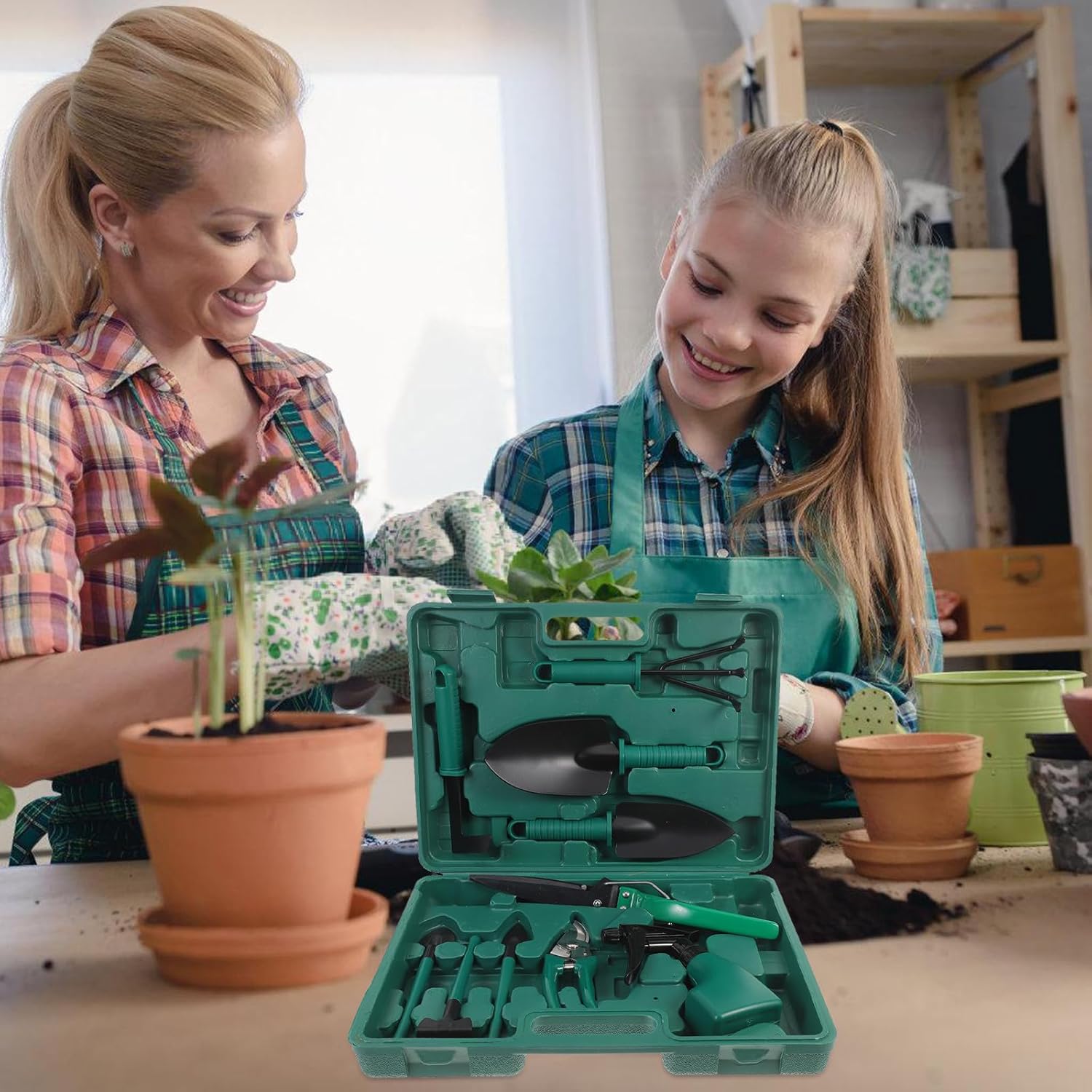 Package Include 10 x gardening tools 1 x storage case Features -Color:Green -Size(weeder):20.00X7.00X3.00cm/7.86X2.75X1.18in -Size(large rake):21.00X6.50X5.00cm/8.25X2.55X1.97in -Product Info:Gardening Tool Set -Size(large pointed shovel):25.00X8.00X2.50cm/9.82X3.14X0.98in -Size(grass shear):32.00X5.00X4.00cm/12.58X1.97X1.57in -Size(shear):17.00X5.50X2.00cm/6.68X2.16X0.79in -Size(small rake):16.00X4.50X2.00cm/6.29X1.77X0.79in -Size(kettle):17.00X9.50X4.00cm/6.68X3.73X1.57in -Material:Plastic, iron - The shovels set are designed for garden and outdoor use, light weight and portable, easy to use and store garden supplies. - Although the design of these products is simple, they are so practical when you use them gardening equipment. - These tool kit have workmanship, to ensure their practicability and durability lawn tools. - These tools are designed with ergonomic handle design, easy and comfortable to use Gardening Supplies. - These garden tool set are made of plastic, iron material, which can be used for long time.Goods Informationgardening equipment This tool set can help you to manage your garden.garden accessories Do you like gardening? If so, this gardening tool set is carefully prepared for you.driveway weeding tool With them, your work efficiency will be increased.cultivator garden tool Suitable and wonderful for outdoor and garden, useful and reliable for you