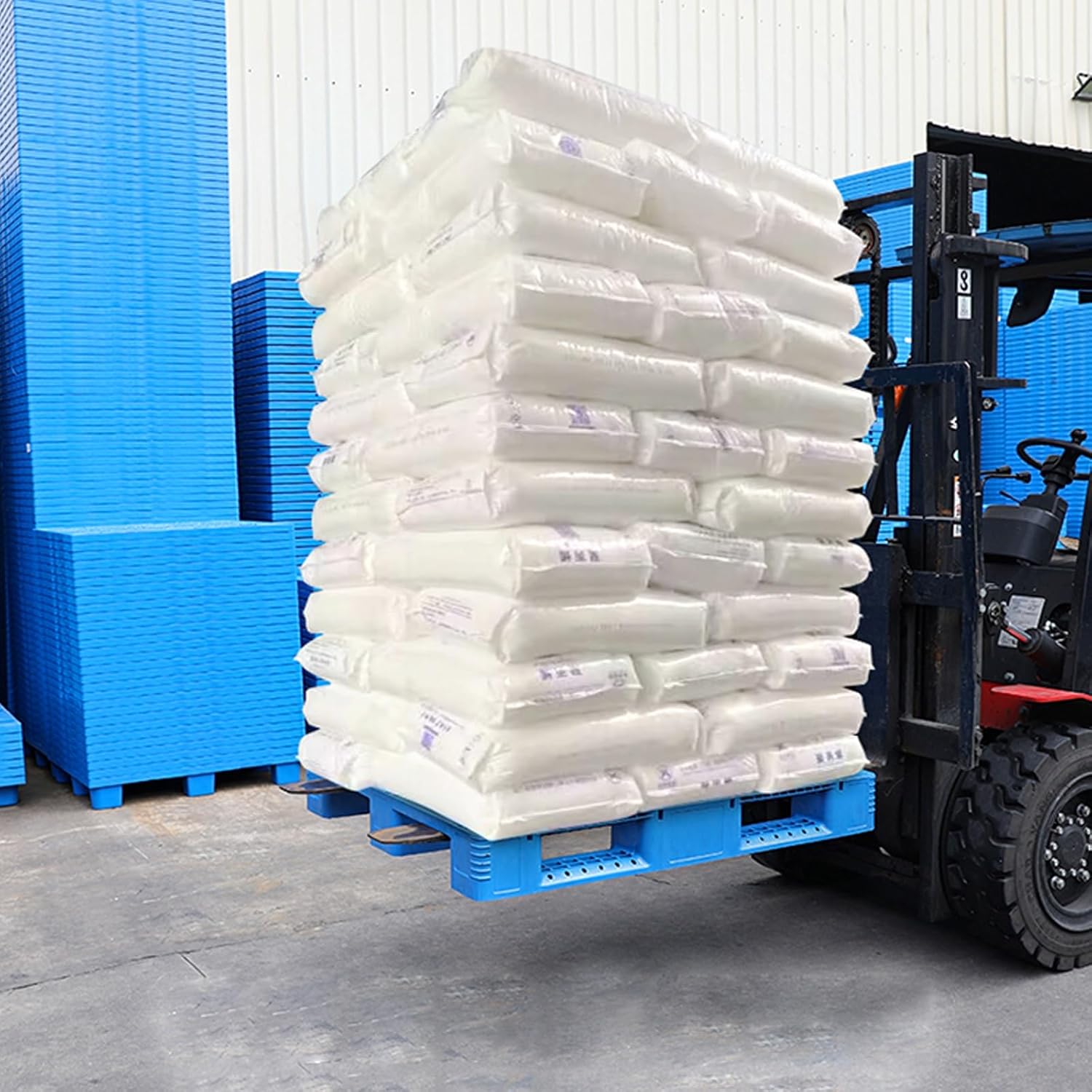 CLLXDZ Plastic pallets for basement storageMaterial: HDPEColor: BlueSize:L 120 x W 100 x H 15( L 47 x W 39 x H 6 in)Static load: 4000kg/8818lbsDynamic load: 800kg/1763lbsWeight: 11.5kg/25lbsApplicable: 685 manual hydraulic truck/motorized forklift