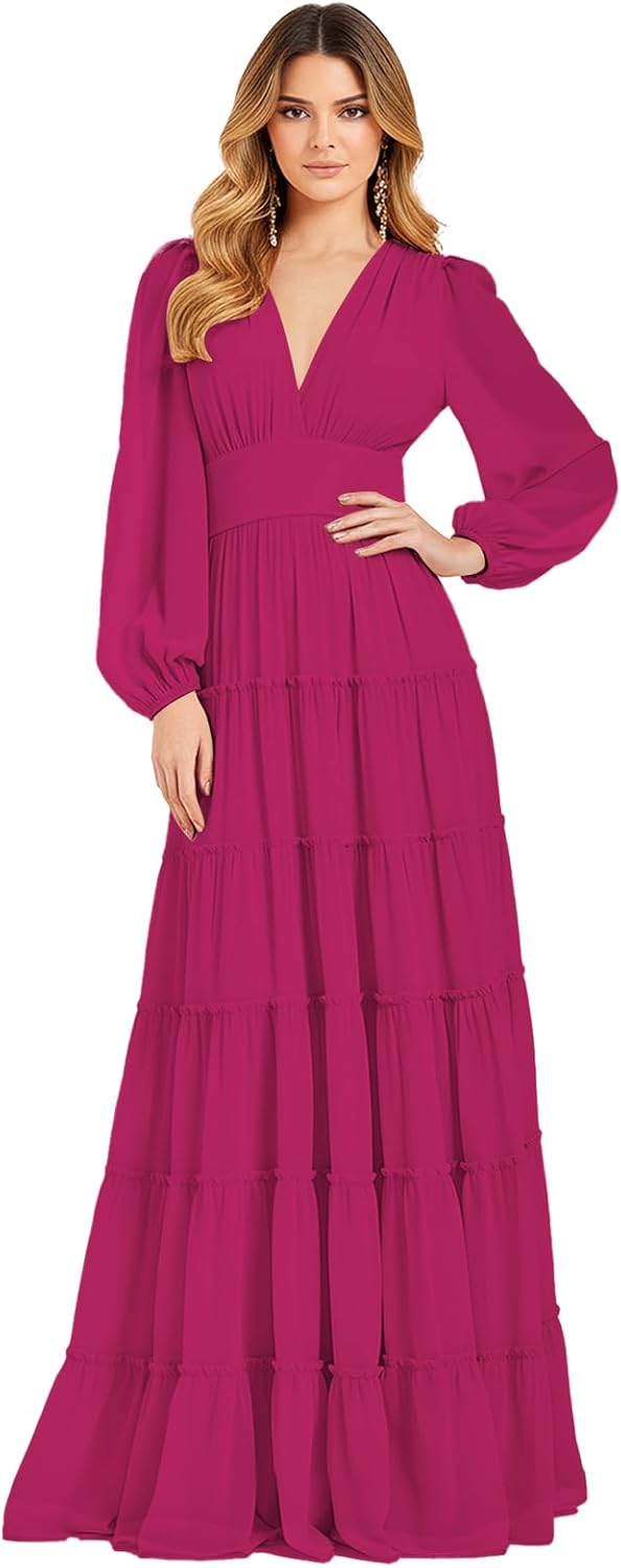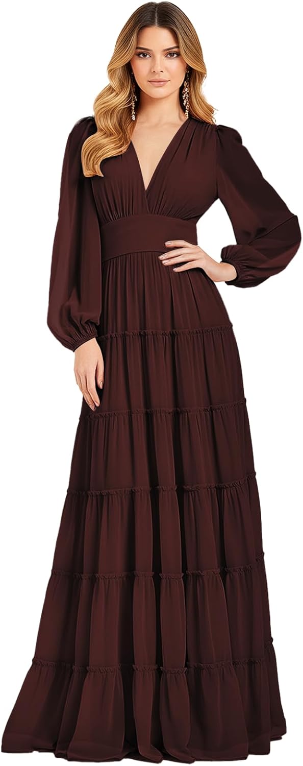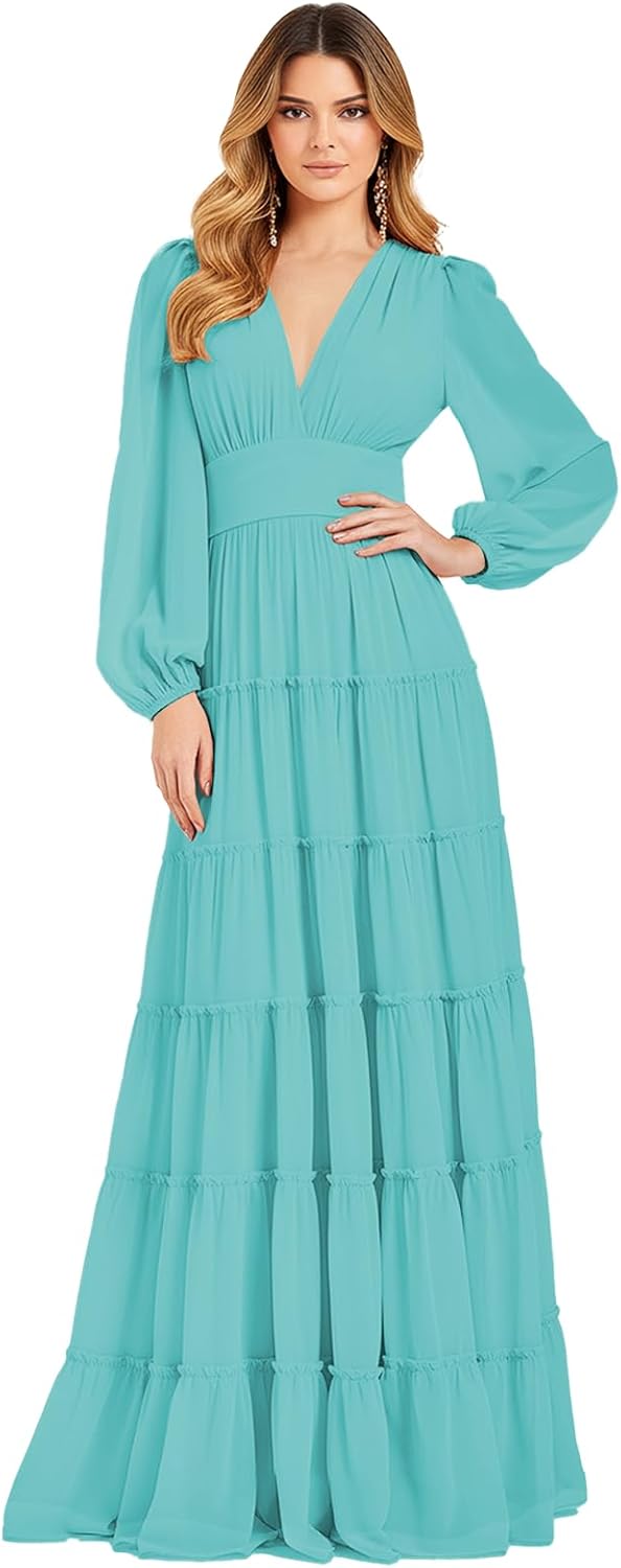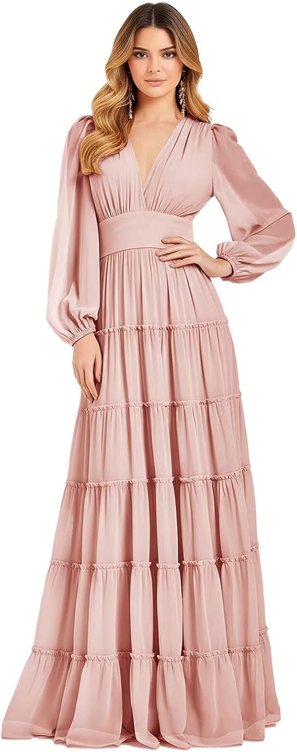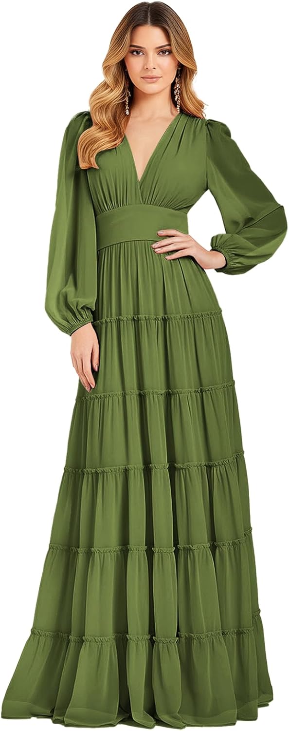 Welcome to zoteno, we are glad to serve you, we have experienced tailors, high-quality fabric suppliers, a variety of colors and unique patterns of decorations, providing a variety of sizes for customers to choose, and free size customization services.Before buying, you can measure your bust, waist, hips, and hollow-to-floor length (in inches) , so you can pick the right size.Dress features:1.Collar type: V Neck2.Sleeves: Long Puff Sleeves3.Dress type: A-line4.Decorations: Ruffles, Pleats5.Back: Zipper Back6.Material: Chiffon7.Length: Floor LengthPrecautions:1. If you have any questions, you can consult customer service, we will be happy to help you solve the problem.2. There is a certain color difference in the dress because of the light shooting equipment, the use of equipment, etc., which is inevitable, I hope you understand.