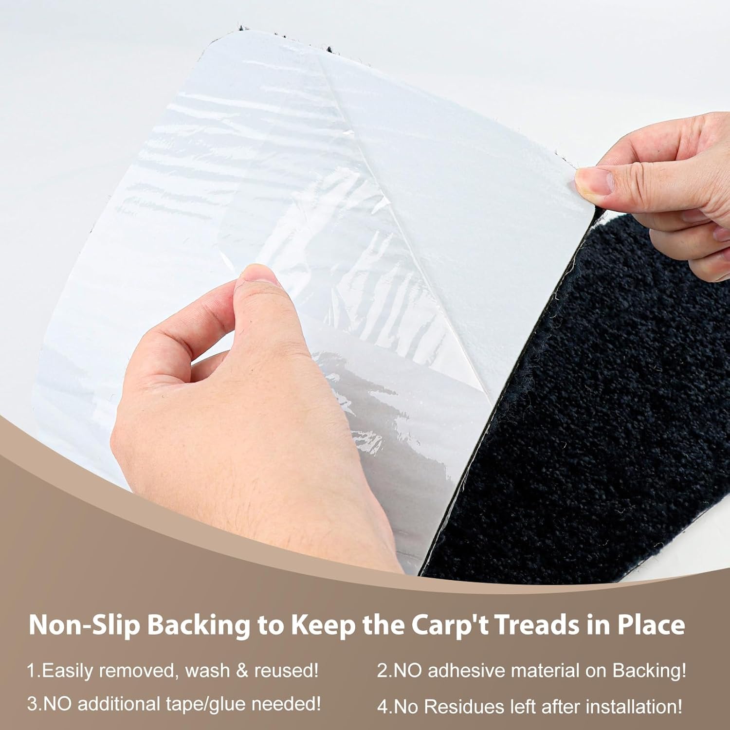 Everyone loves a beautiful hardwood stairway, but even the most attractive stairs can be slippery for anyone in the family, including pets, elders and kids. PURE ERA carpet stair treads can add safety to your steps, protect your hardwood stairs from wear and tear, not to mention an extra layer for warmth and comfort. With simple solid design, it easily complements the natural beauty of your floors and home.Material: 100% PolypropyleneBacking: Tape free, non-slip, self-adhesiveDimension: 24x36x0.4inches;Noise-absorbingDurable and long-lastingCarpets can protects your floors, reducing wear over timeAvailable in 5 colors: Brown, Dark Gray, Light Gray, Cream Gray, BlackWashable with water for repeated useSimple solid decorative design looks great on most homeDesigned for indoor use onlyNote: All carpet treads sizes are approximate. Due to the difference of monitor colors, some colors may vary slightly.