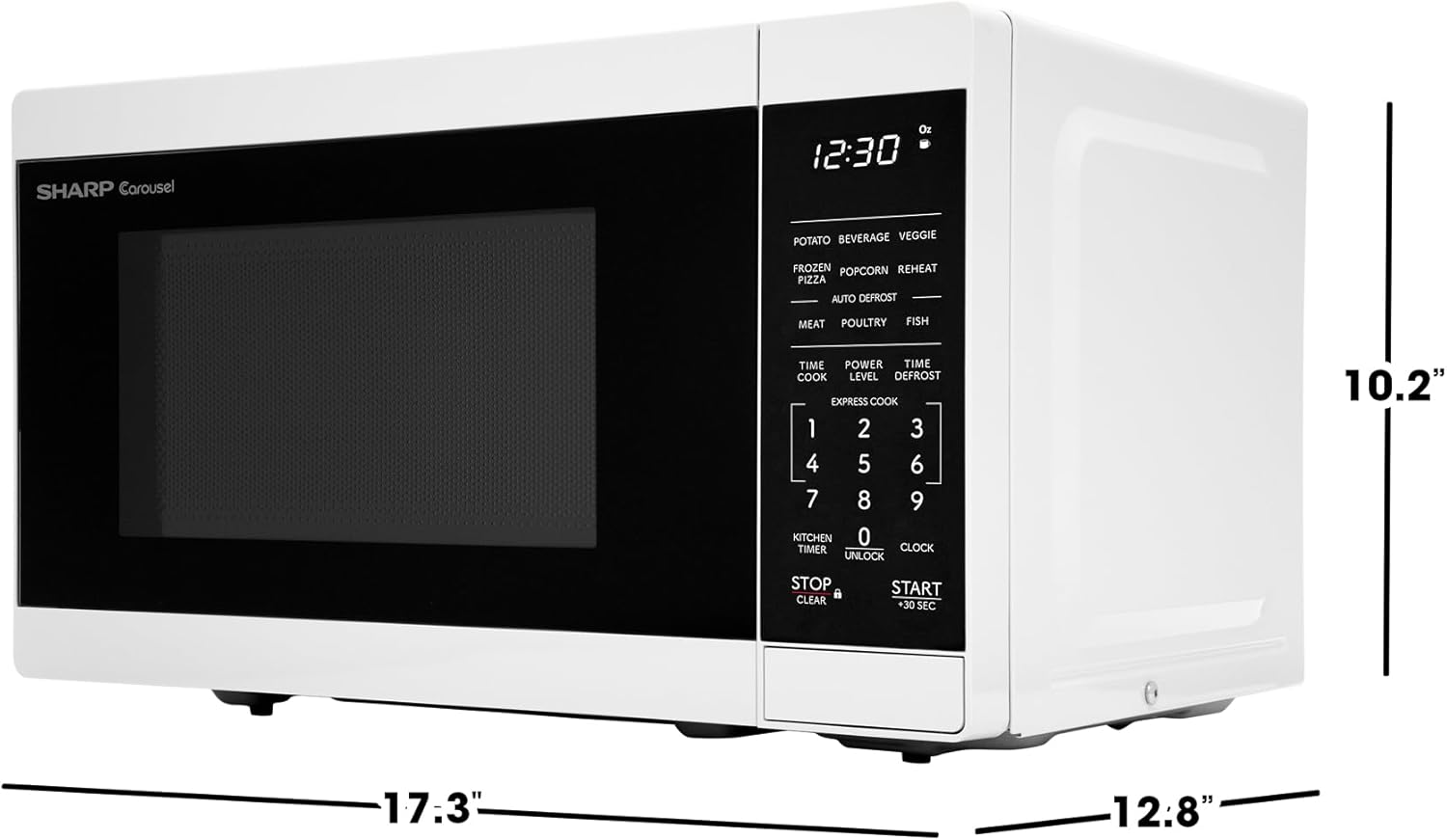 SMC0760KW Compact 0.7 cu. Ft. Microwave is ideal for snacks, beverages, frozen meals and reheating. Its small footprint fits just about anywhere, while its roomy 10" carousel turntable is big enough for a full-size dinner plate. Glossy finish with scratch-resistant glass door complements your style