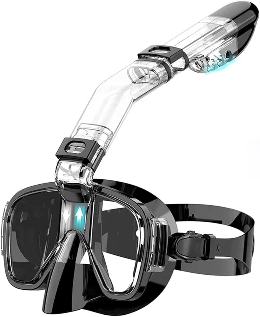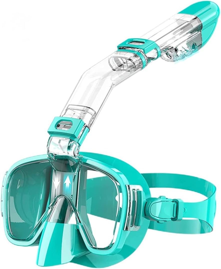 ✤✤PROFESSIONAL ANTI-FOG & ANTI-LEAK DESIGN: Separate inhaling and exhaling channels stop the top snorkel mask from fogging up, and anti-fog coating on the lens and anti-fog inserts guarantees anti-fog effect; Advanced leak-proof silicone sealing mask with floating ball prevents salty water from entering in mask✤✤Easy-to-adjust buckle system: This mask features a simple push-button adjustable buckle system that easily adjusts the belt for almost any adult size face, ensuring a waterproof seal that allows you to swim, dive or snorkel Enjoy hours of fun ✤✤Low volume design: Low capacity means the mask is easier to clean, reduces buoyancy, and opens up new adventures throughout the water and rain. This mask is made with only top-quality materials✤✤THE LATEST SAFETY BREATHING MECHANISM - Fresh air enters the snorkel mask from the breathing tube, and carbon dioxide is discharged from both sides of the face. The air inlet channel and the air outlet channel are separated from each other. Exhaust gas does not flow back, and breathing is smoother and healthier✤✤The tempered glass lens is not easy to fade! Always want to be safe! Even the impact of the furthest or heaviest object will not break or break the lens in this mask, providing better protection for your eyes✤✤This diving mask features an adjustable swivel buckle for quick adjustment for athletes and divers of different face types.The mask has an adjustable strap that is easy to operate, adapts to a large number of facial types, and is lightweight and ideal for free diving✤✤100% risk-free satisfaction guarantee - we offer 100% Risk satisfaction guarantee, so you can buy with confidence. However, we are pretty sure that this snorkeling mask will make you a great joy in swimming, snorkeling or diving trips