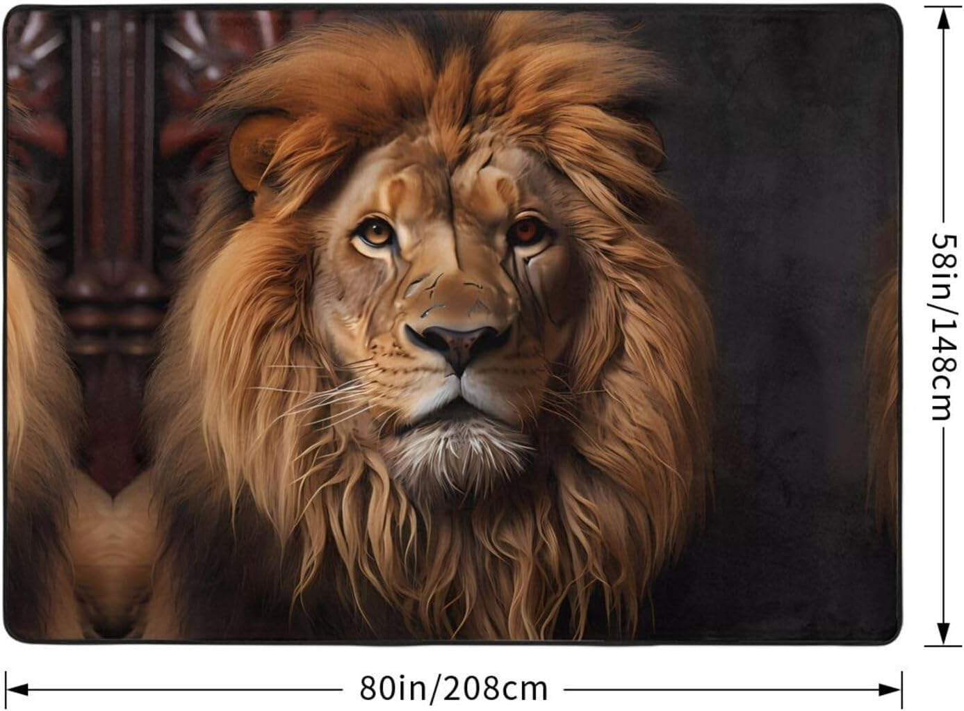 This The Lion's Gaze printed decorative carpet is made of polyester flannel, which is delicate and soft to the touch, with tight and regular pile. It will not pill or fade after long-term use, and will always look like new. The middle layer uses high-density memory foam, which can automatically adjust according to the foot shape and pressure, providing precise massage for tired feet and relieving fatigue. The bottom is designed with non-slip plastic bottom non-woven fabric, which can firmly grip the ground even when it encounters water or on smooth surfaces, ensuring the safety of the elderly and children. It is easy to clean daily, can be machine washed or hand washed, and is wear-resistant and does not shed. Exquisite stitching technology and high-quality tailoring, with smooth edges, are suitable for a variety of scenes such as bathrooms, living rooms, and bedrooms. Non-slip, comfortable, and durable, adding a touch of intimacy and elegance to your life.