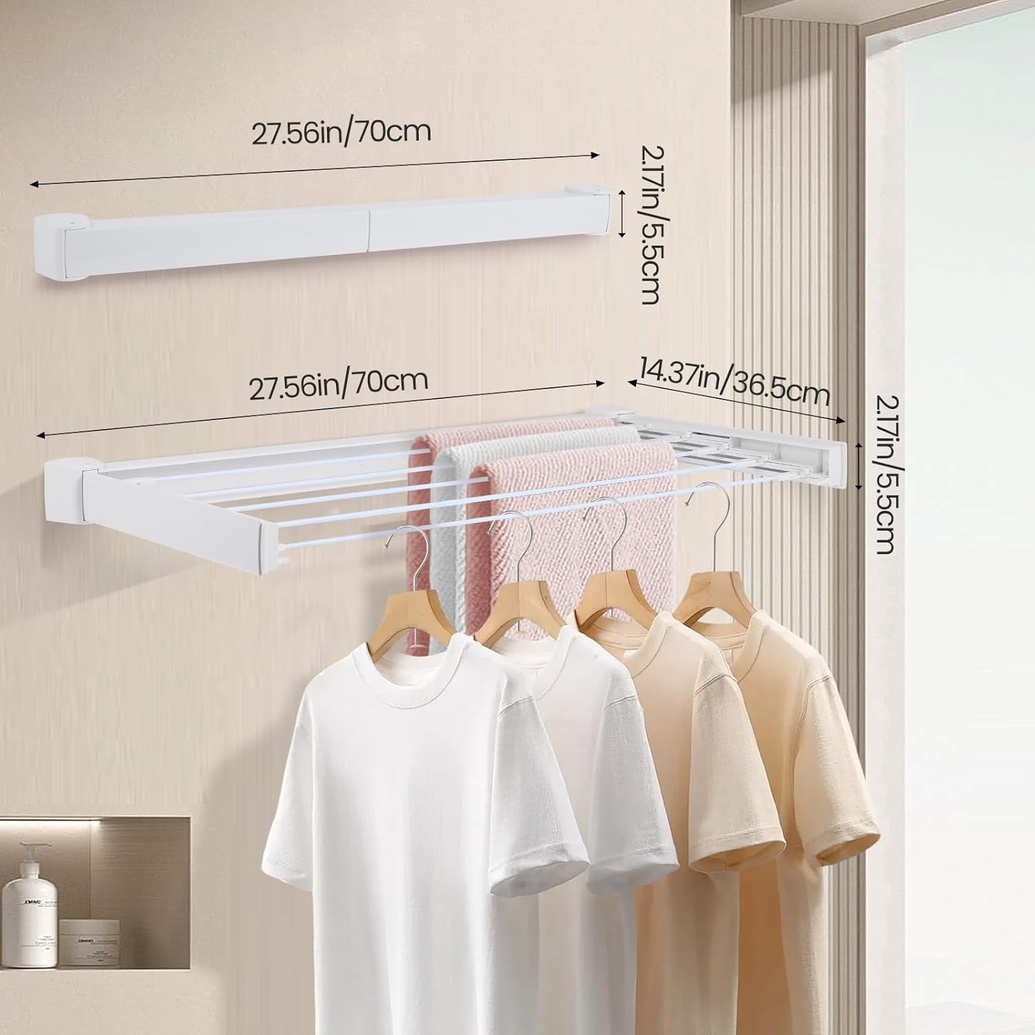 | Recommended Uses For Product | Clothing, Foldable drying rack, Great for small spacesapartment, dorm, bedroom, bathroom, Wall mounted towel hanger |