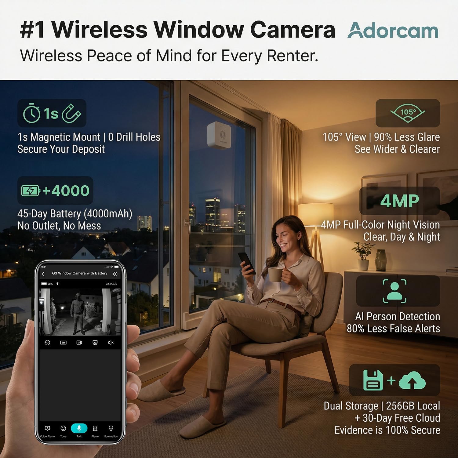 | Other Special Features of the Product | 2-Way Audio, 45-Day Battery Truly Wireless Window Camera, 4MP Color Night Vision, Magnetic Washable Mount, Smart Motion Detection and Instant Alert |