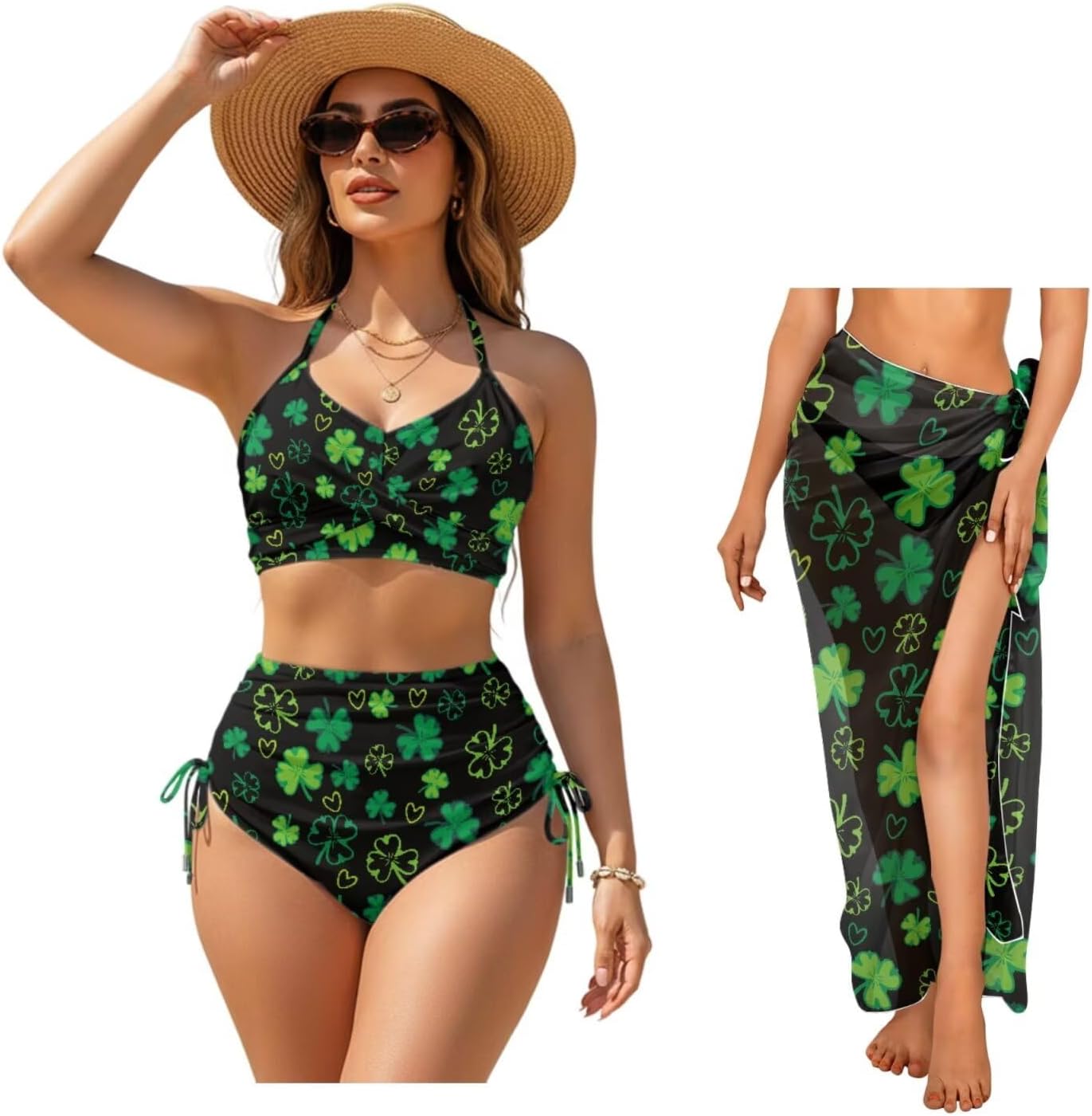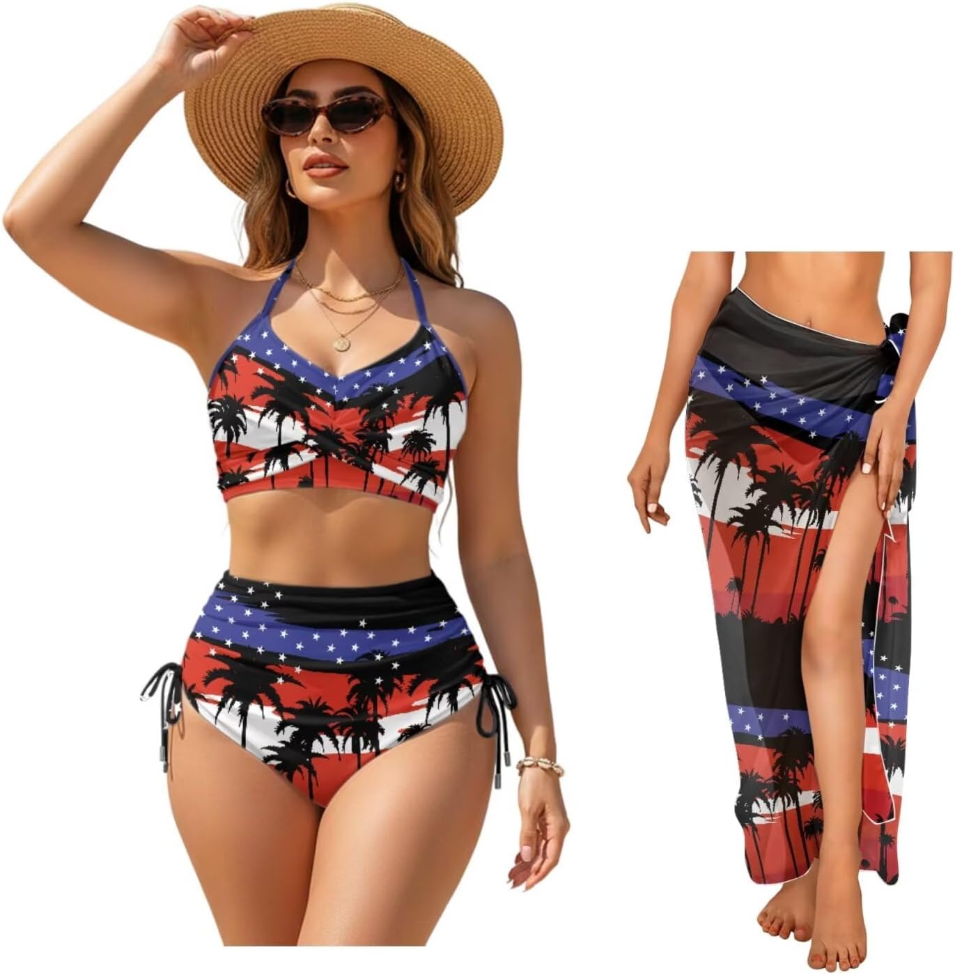 Psaytomey Womens Two Piece High Waisted Bikini Sets with Sarong Beach Cover Ups Features: Lace up bikini set /two piece bikini set for women/sexy bikini set for women/plus size bikini set for women/plus size swimsuit for women/bathing suit for women/thong bikini/bandeau bikini Featuring stylish details such as comfortable and soft padded cups and adjustable back ties, this women's high-waisted bikini set won't reveal too much so you can enjoy your summer days, with the top providing plenty of support and the matching bottoms offering moderate coverage for comfort and elegance on the beach This trendy and elegant semi-sheer wrap sarong is eye-catching in bright colors, and the ties are long enough for easy tying, allowing you to tie the beach towel around your hips, chest or shoulders according to your preference Notes: Can be washed by hand, do not soak for a long time, do not bleach, and the temperature of the cleaning solution should not exceed 45ºC Due to different measurement methods, errors within 1-2cm are normal Due to production batches, machinery and equipment and other objective factors, it is difficult to avoid or there will be a small color difference, location and size and other errors, such as the above problems are normal phenomenon